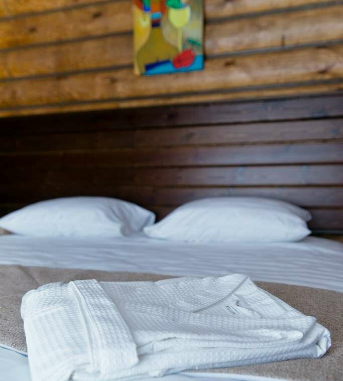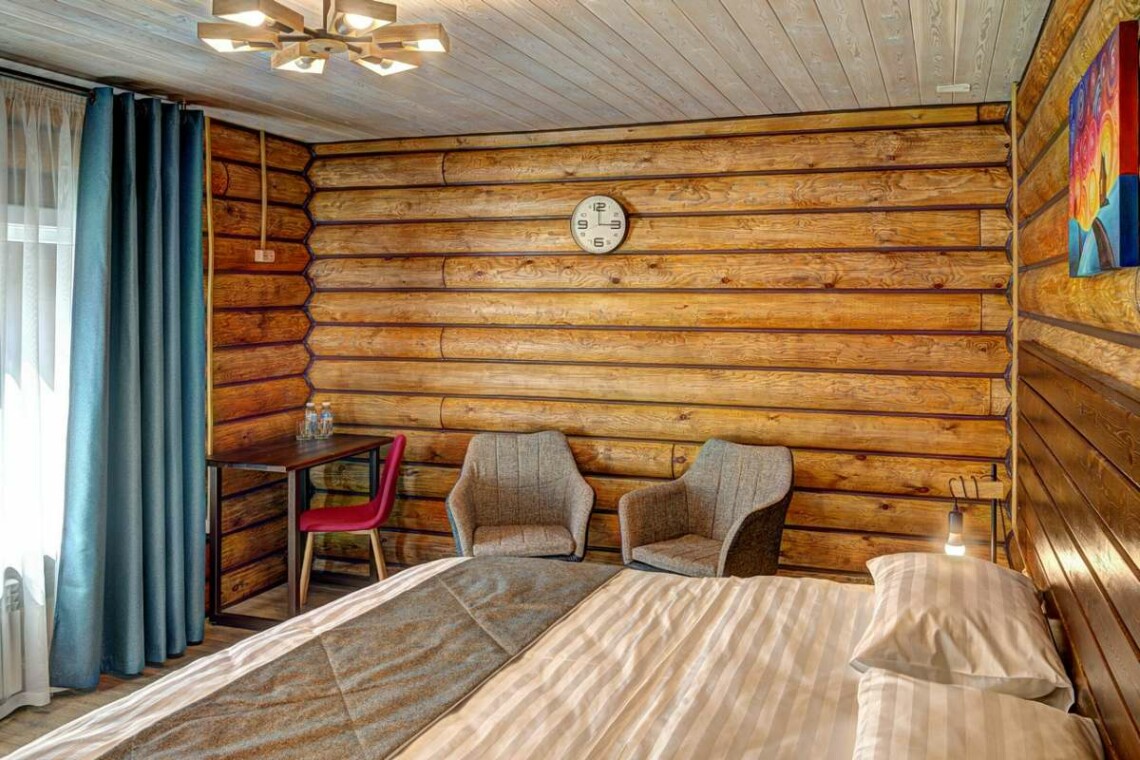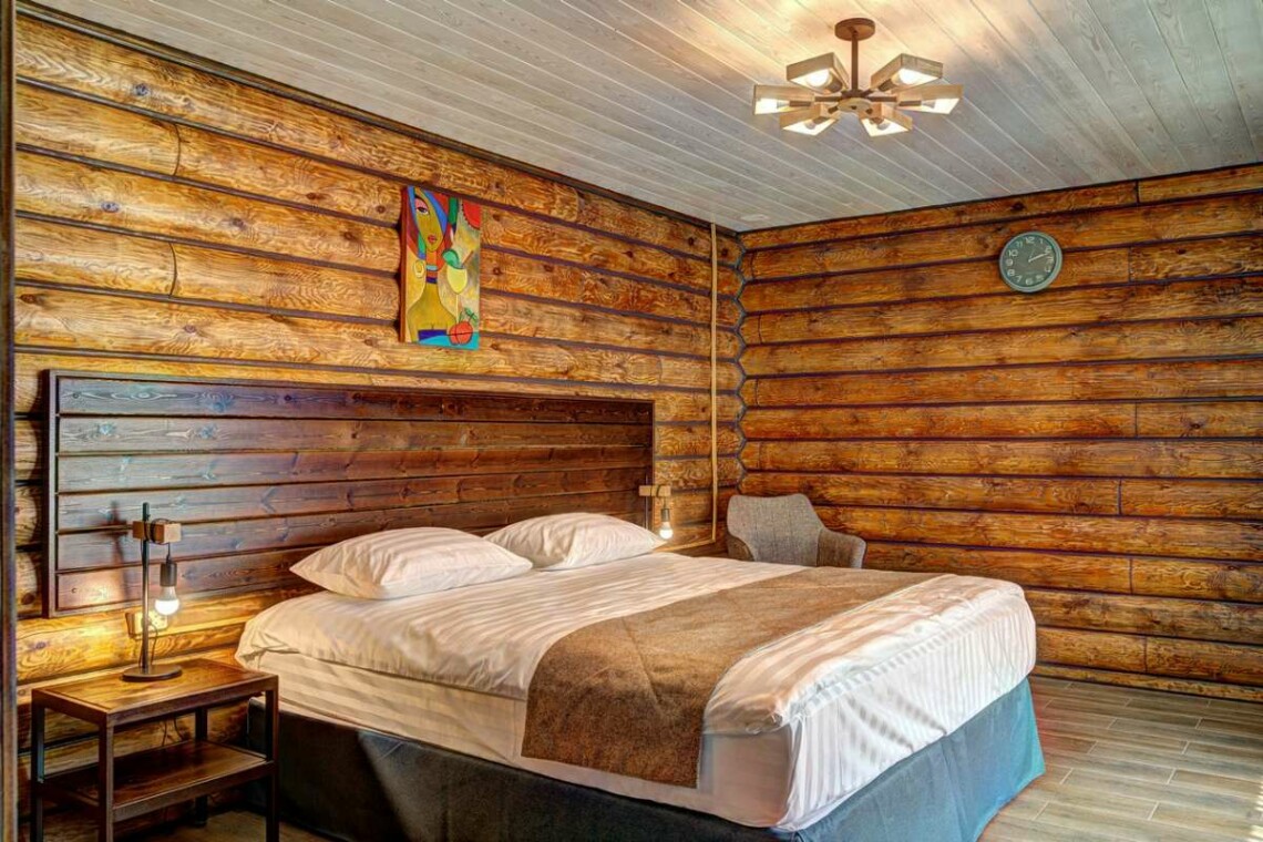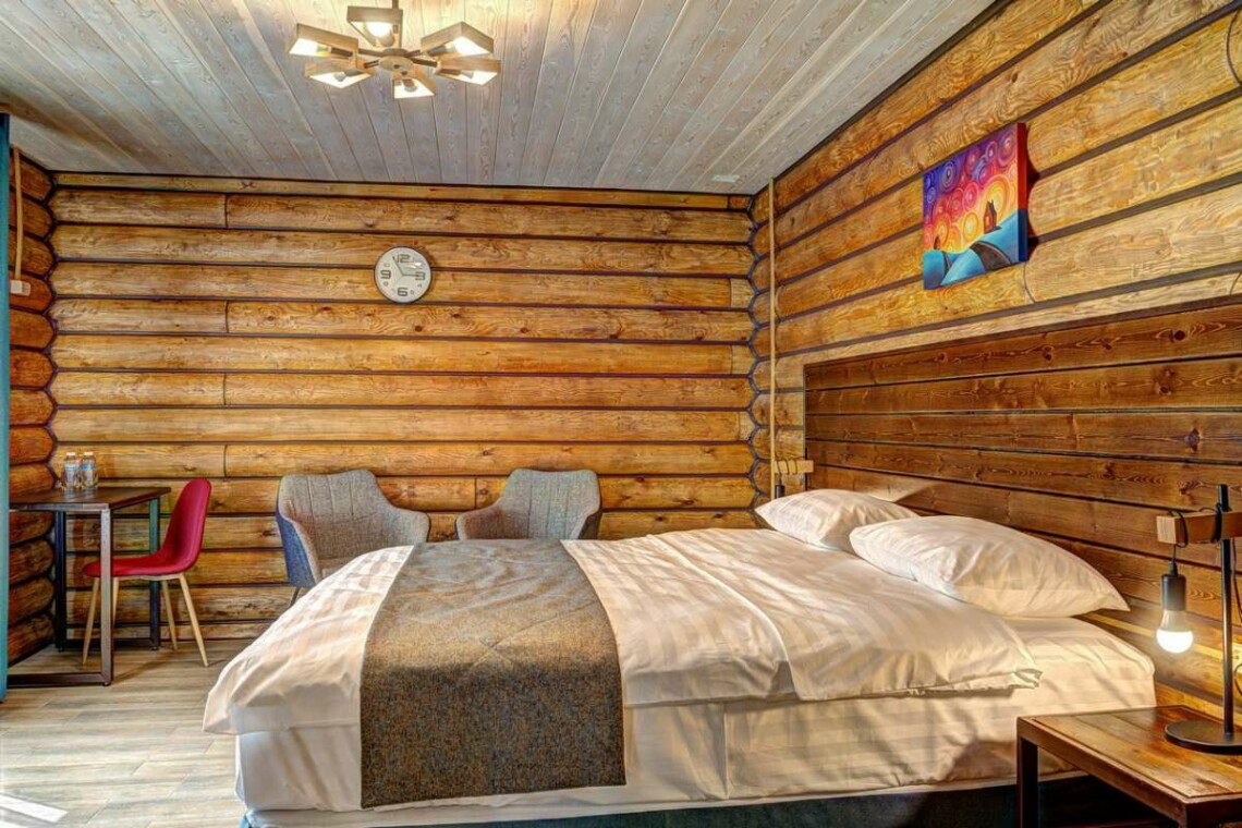 Безусловно один из самых уютных номеров. Построенный из натурального дерева номер наполненный фитонцидами, биологически активными веществами хвойного леса. Запах дерева успокаивает и расслабляет а отдельная мягкая зона располагает к неторопливой беседе и уюту.