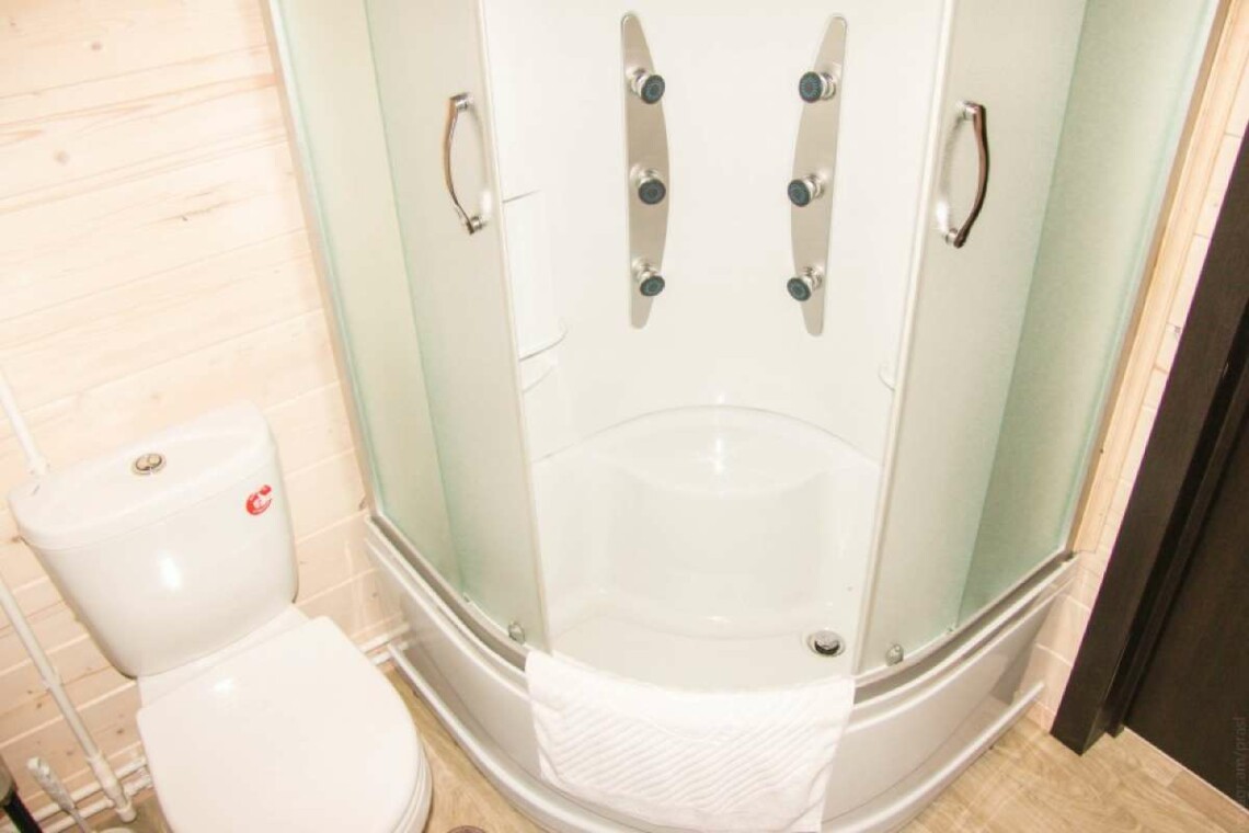 Одноэтажный коттедж-студия с уютной верандой. Коттедж разделен на 3 части: гостиную, оборудованную кухонным гарнитуром, спальню и туалетную комнату. В гостиной имеется удобный диван, на 2 гостя, стол с табуретками, шкаф, телевизор. В кухонный гарнитур встроен мини-холодильник, микроволновая печь, мультиварка, электрочайник, раковина, посуда и столовые приборы на 4-х персон. В спальне 2 односпальные кровати-трансформеры, а также две тумбочки между ними. Туалетная комната оснащена душевой кабиной, раковиной, унитазом. В ней уже есть шампуни, мыло, полотенца, тапочки, туалетная бумага. В домике есть горячая и холодная вода, отопление. Рядом с домиком расположена зона для пикника.
