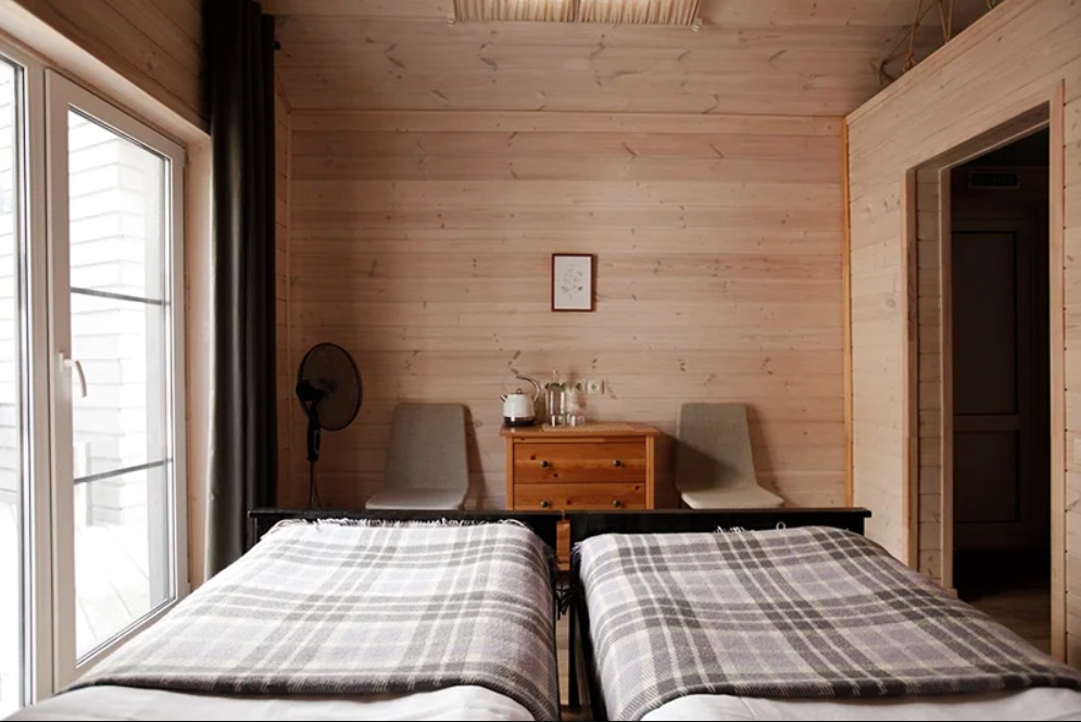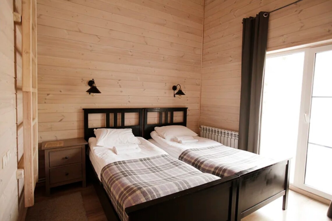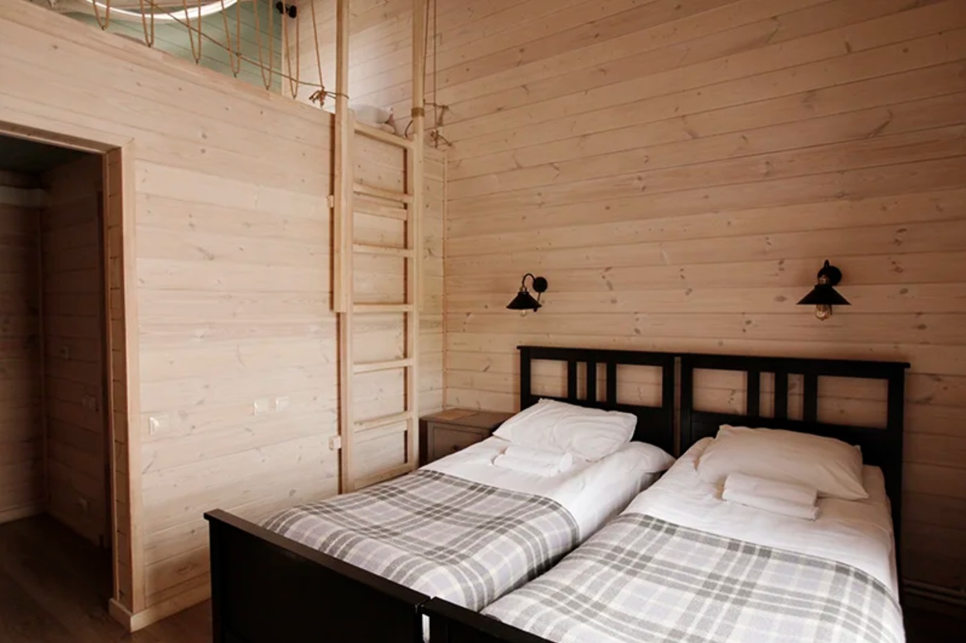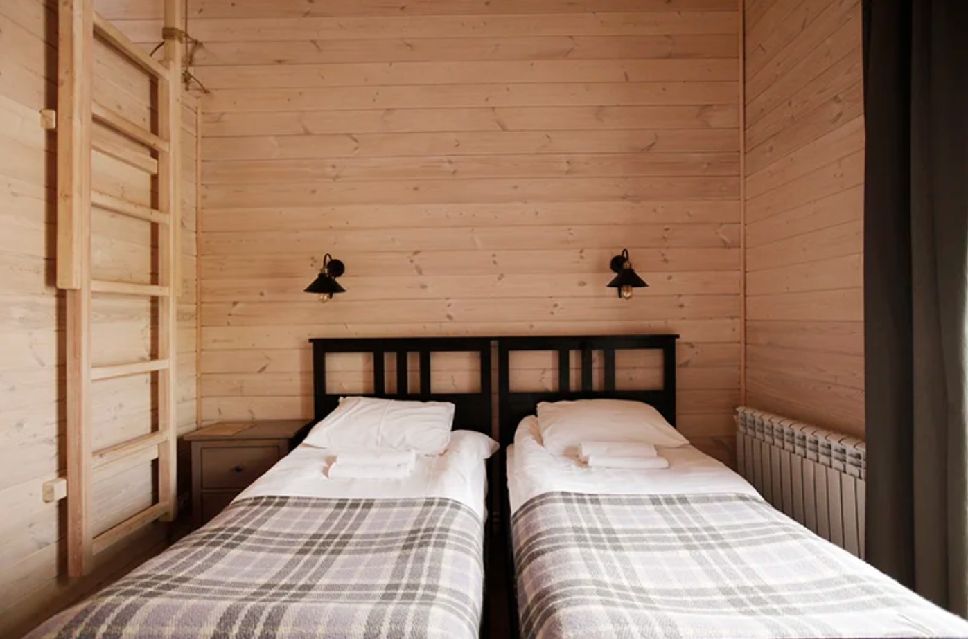 Здесь удобно разместятся два, три или четыре человека. Этот вариант подойдет, если вы приезжаете с друзьями или парой, но привыкли спать каждый в своей кровати. Кровати можно сдвинуть при желании.
