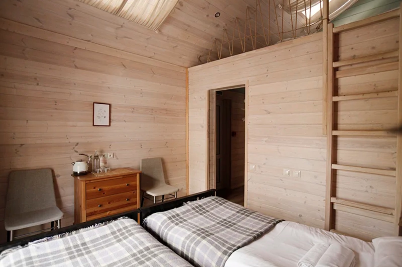 Мы не рекомендуем останавливаться здесь с маленькими детьми. При планировке Оранжереи в 2016 году мы не предусмотрели здесь места для кроваток и дополнительную звукоизоляцию между комнатами. Поэтому, если вы прибыли с ребенком, мы просим вас выбрать другой вариант, скрыть всем было комфортно: например, отдельные домики Топинамбур, Артишок или Скорцонера.