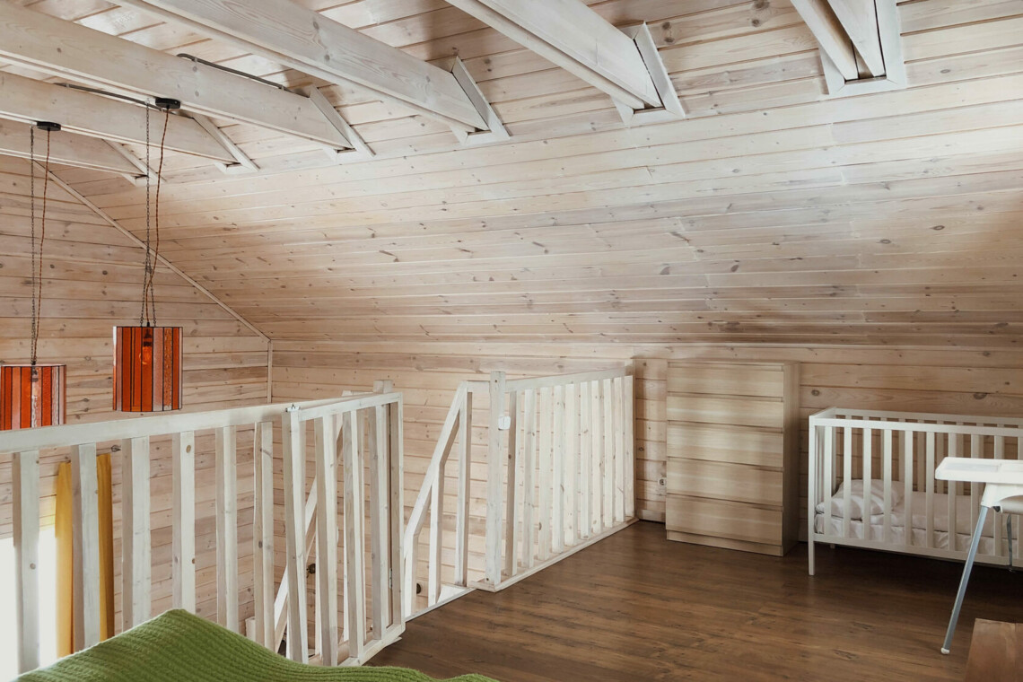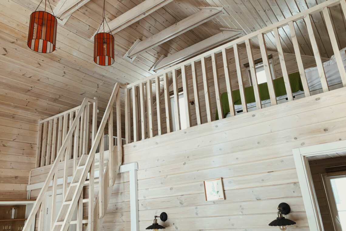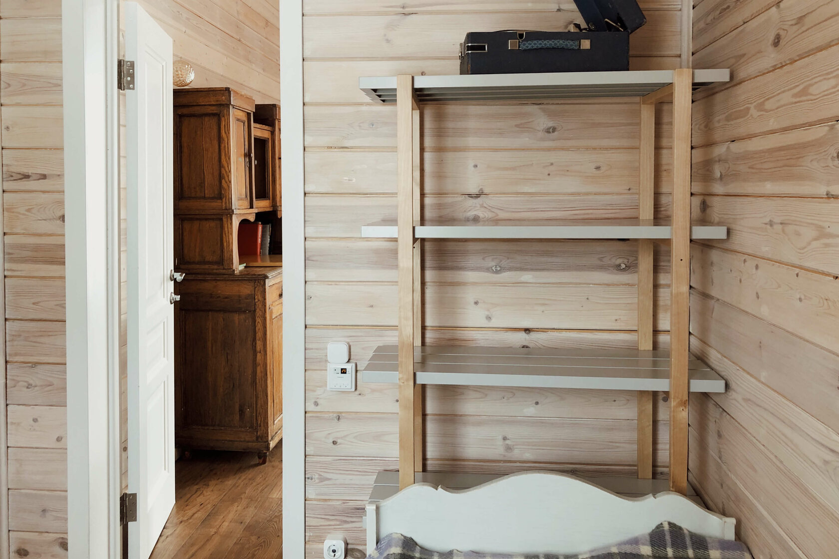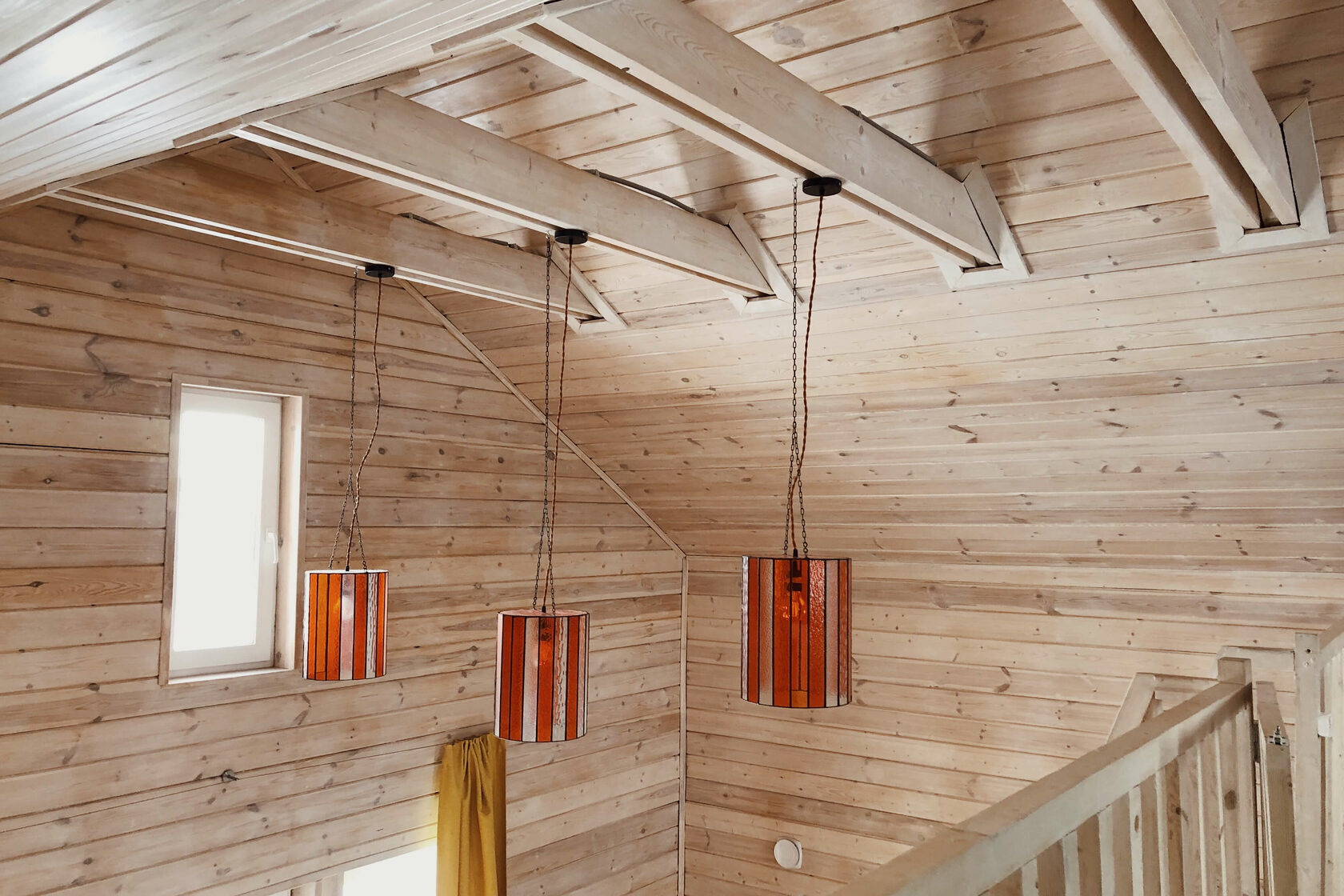 Двуспальная кровать (160 см) и детская кроватка находится на втором этаже. Обратите внимание, что лестница, которая встречается на втором этаже, довольно крутая и подходит не всем. На первом этаже в гостиной кушетка, которая раскладывается в спальное место на 160 см, а в небольшой комнате – на одноместную кровать (80 см).