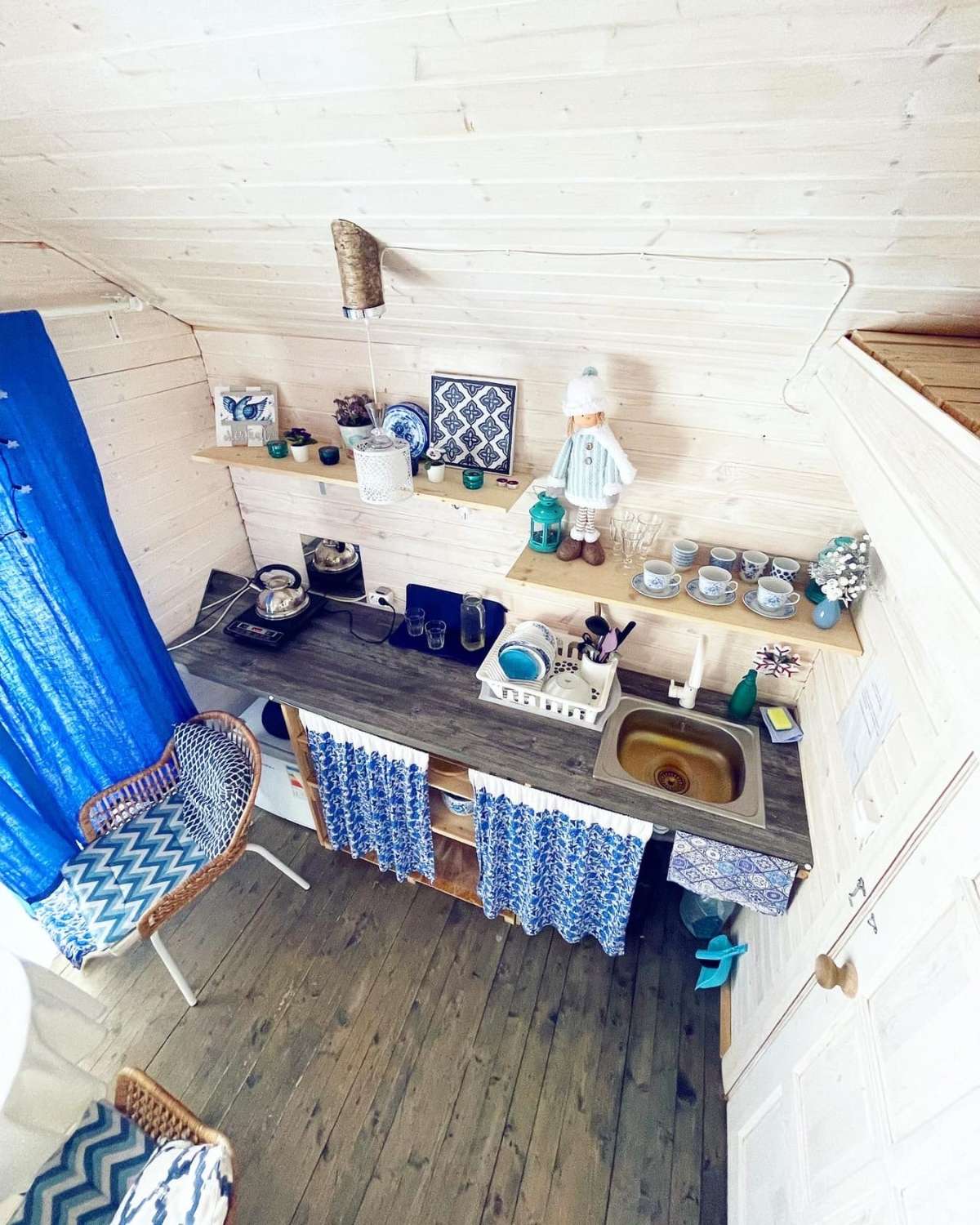 • Гостиная с двуспальной кроватью за шторой и мини-закрытием