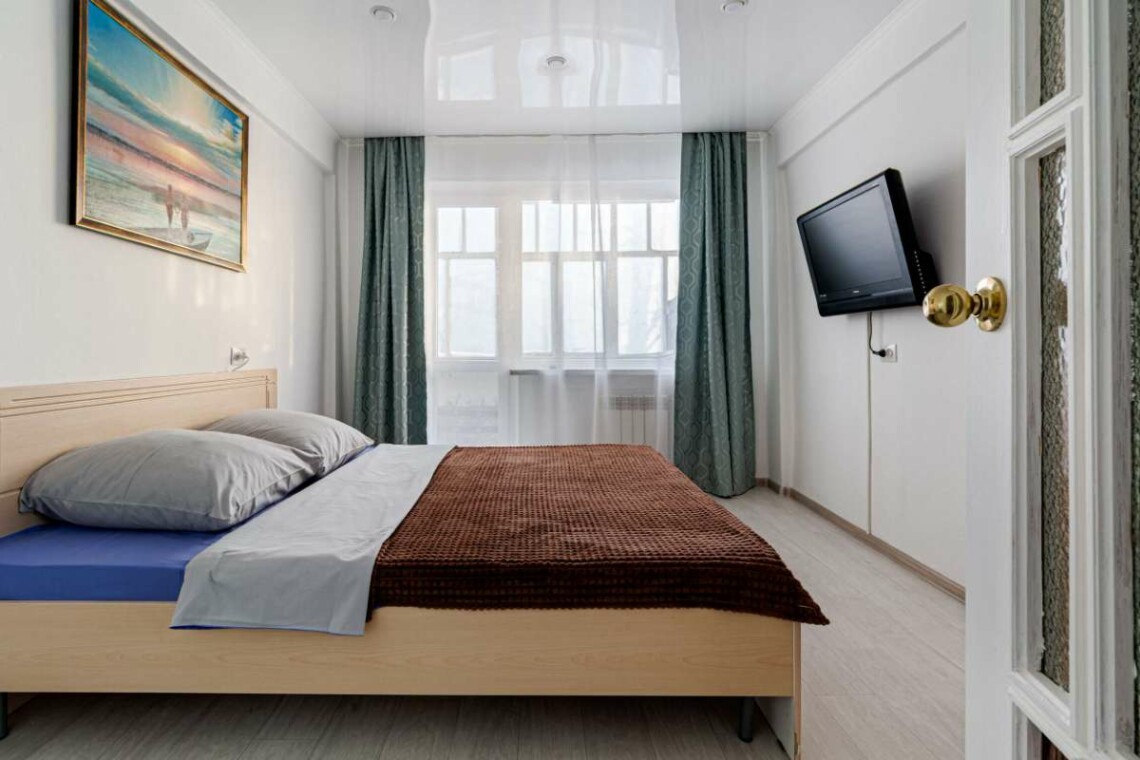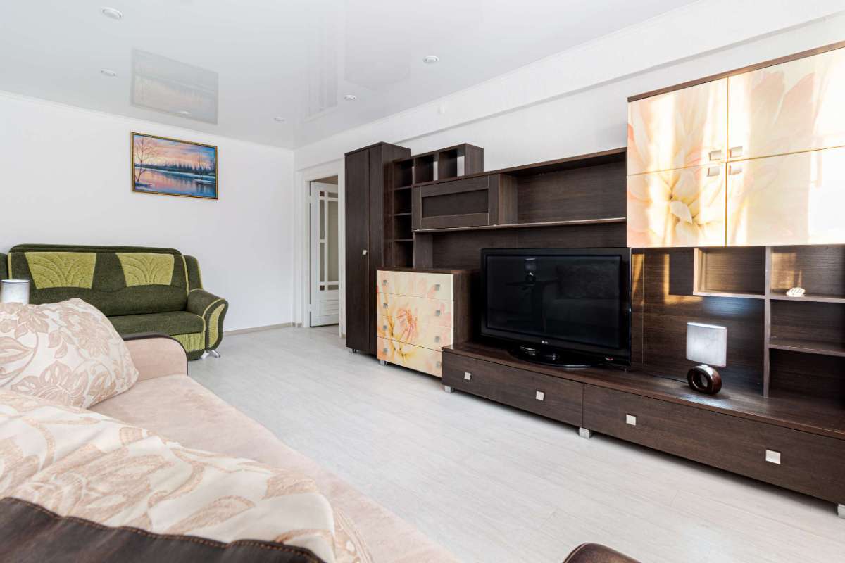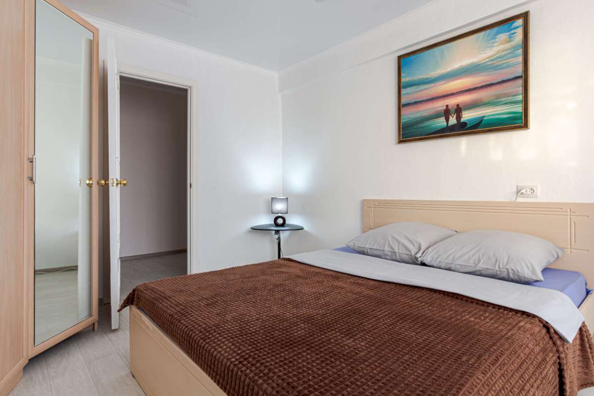 Двухкомнатная квартира посуточно с большой двуспальной кроватью и раскладным диваном.(2+2+1 спальных мест)
