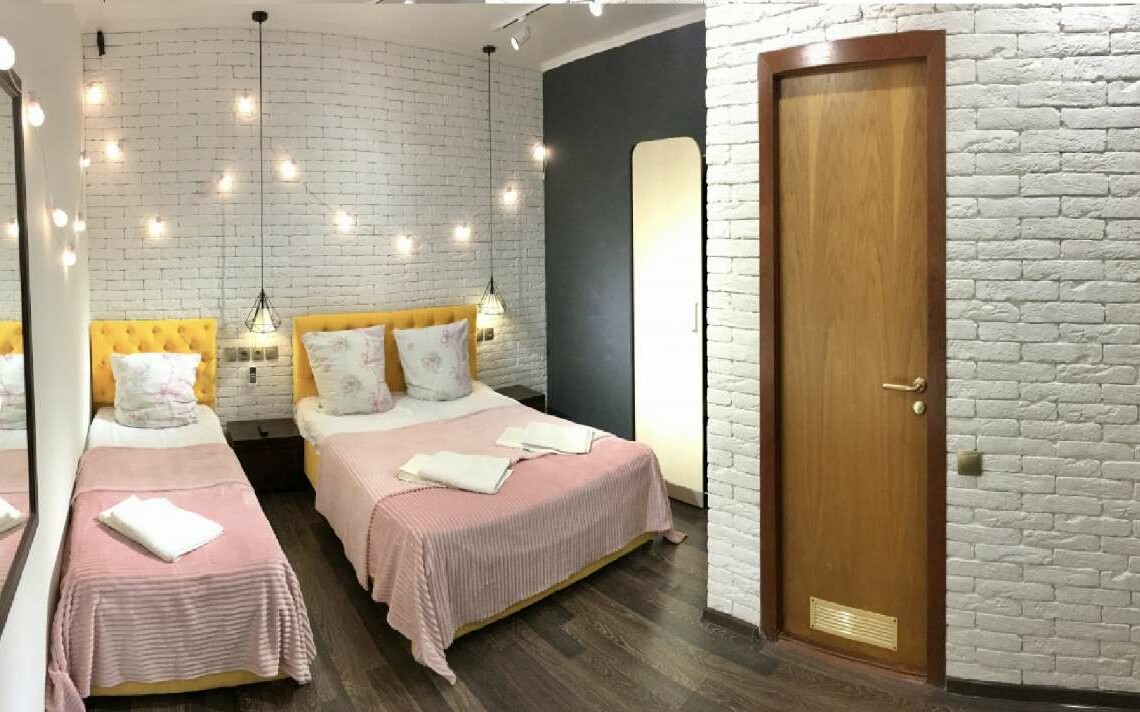 Однокомнатный просторный номер оформленный в дизайнерском стиле площадью 25 м2, с выходом на общую террасу.Апартаменты оборудованы комфортной современной мебелью, телевизором, включая кровати с ортопедическим матрасом, прикроватные тумбы.