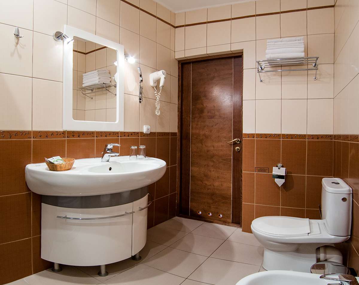 Санузел: душ, унитаз, раковина, фен, комплект полотенец, гигиенические принадлежности.