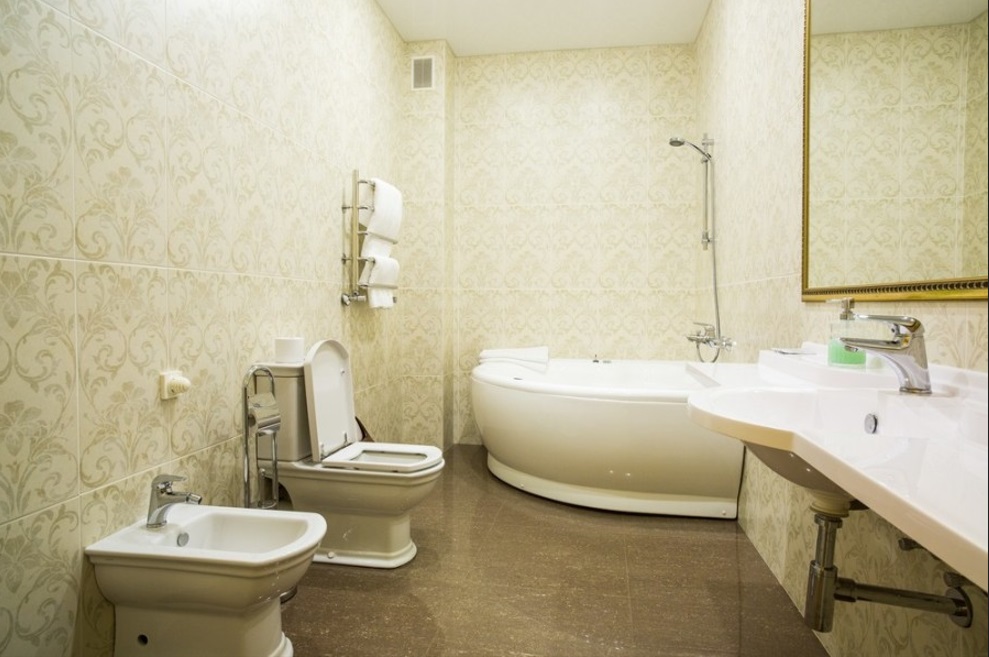 В номере есть большая ванная комната, оснащенная джакузи, биде, полы с подогревом.