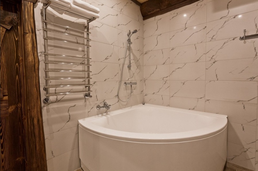 • ванную комнату с джакузи и биде, зеркалом, феном, набором банных принадлежностей, тёплые полы;