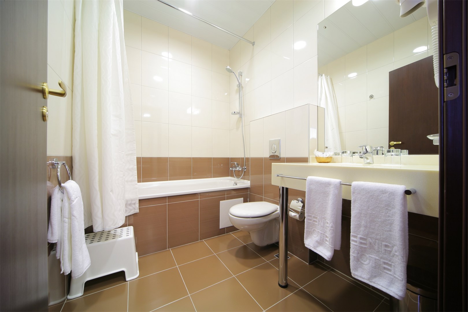 В ванной комнате: ванна / душевая кабина, фен, набор фирменной парфюмерии. Пакет и бланк заявки на прачечную, щетка для одежды и одежды прилагаются.