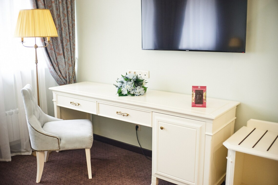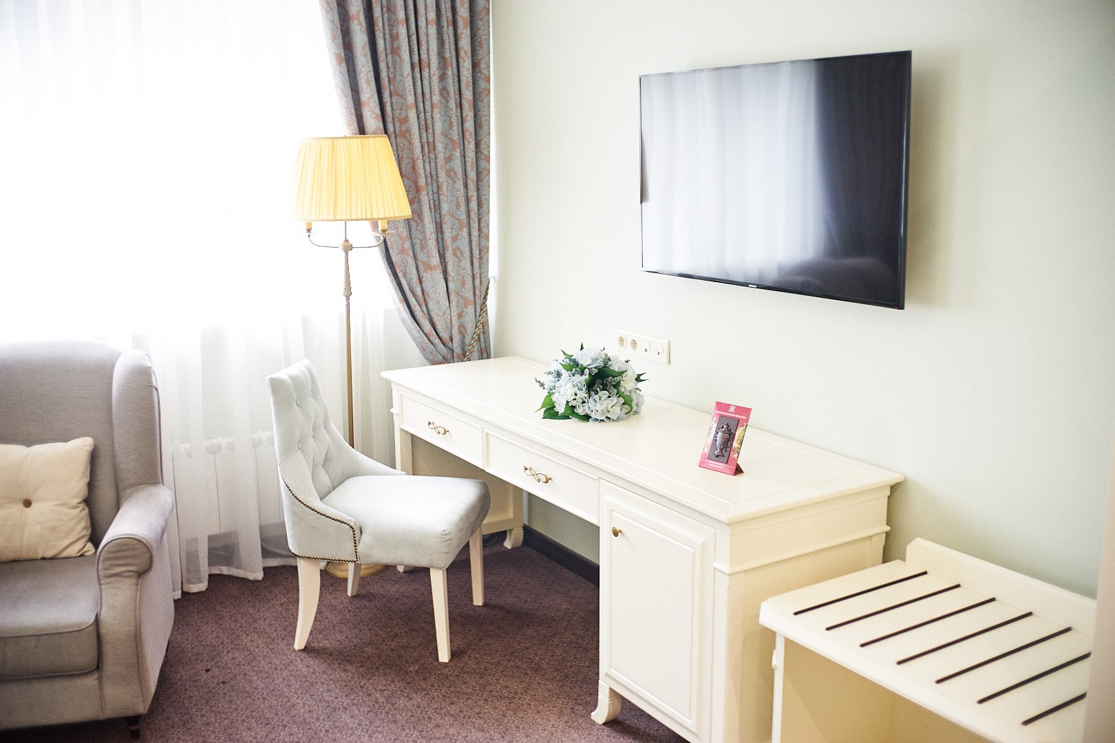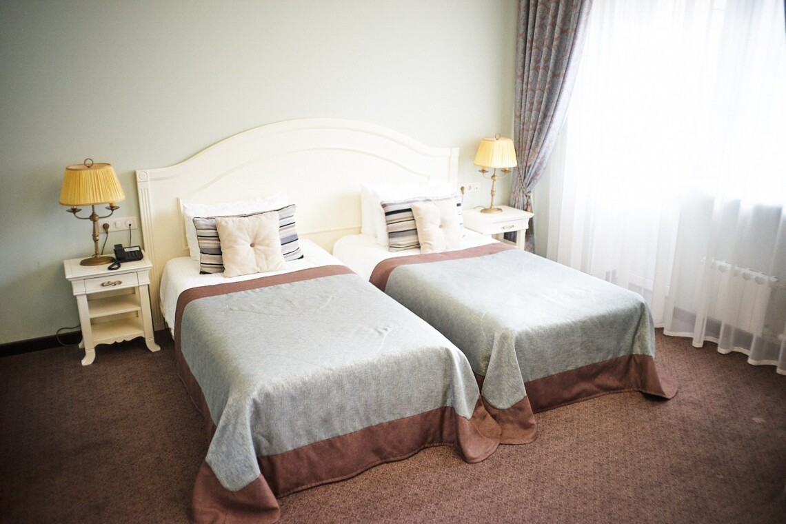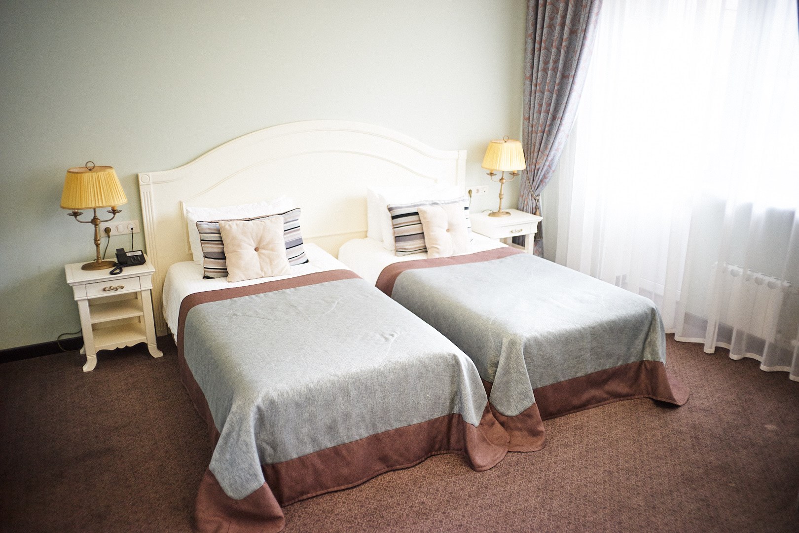 Номера категории Стандарт Плюс парк-отеля «Грумант» являются избранными предложениями, сочетающими в себе высокий уровень превосходства и демократичной стоимости. Однокомнатный номер с эргономическим разделением на достаточное пространство для размещения: 2 раздельные кровати или 1 двуспальная кровать, мягкая мебель, телевизор, телефон, кондиционер, надежный сейф, фен, шкаф, стол, стул, мини-бар. Также в номере есть тапочки, зубной и косметический наборы. Санузел оснащен качественной ванной, либо душевой кабиной и биде. Заказывая номер Стандарт Плюс, вы можете выбрать дополнительные места и современные детские кроватки.