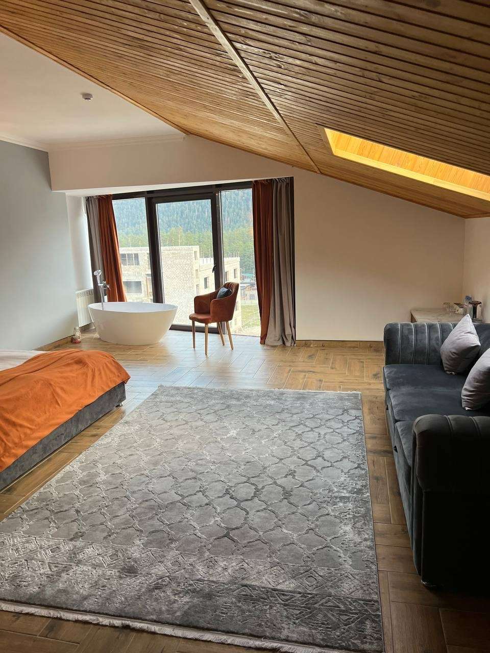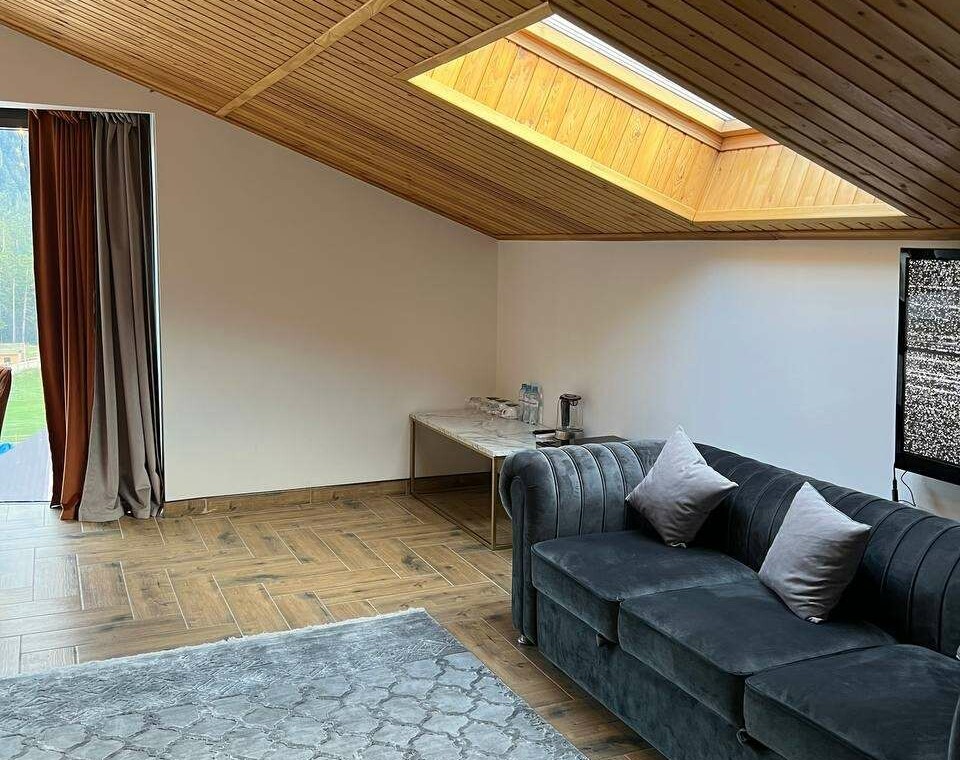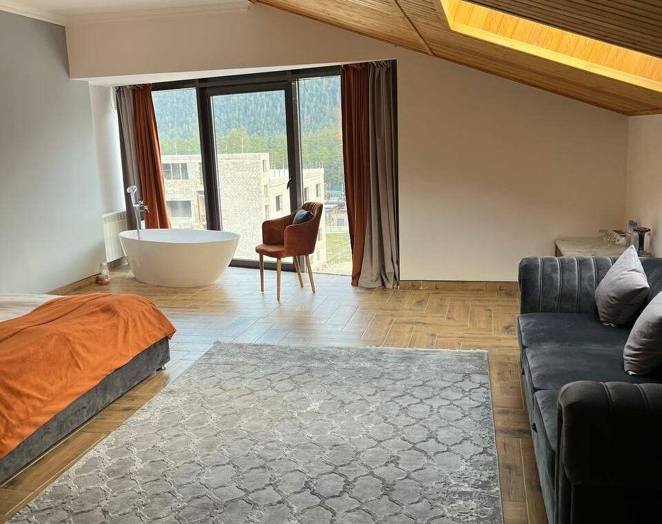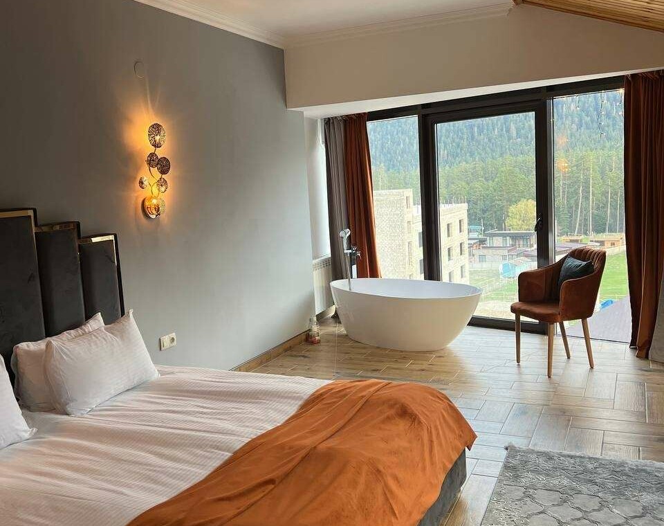 Плошадь: 35 кв.м. Вместимость: до 3 гостей (2 основных местах 1 на дополнительном месте) Мы рады Вам предложить номера категории «Deluxe room», площадью 35 кв.м. Насладитесь изысканным отдыхом после активно проведенного дня на горнолыжных склонах Архыза, остановившись в одном из номеров категории «Deluxe room». В номере имеется: доп. место – диван, мини-бар, Wi-Fi, спутниковое ТВ, чайный набор, тапочки, халат, фен, теплые полы, банные принадлежности. Панорамные окна добавят комфорта и откроют великолепный вид на природную красоту Архыза. Дети до двух лет размещаются – бесплатно.