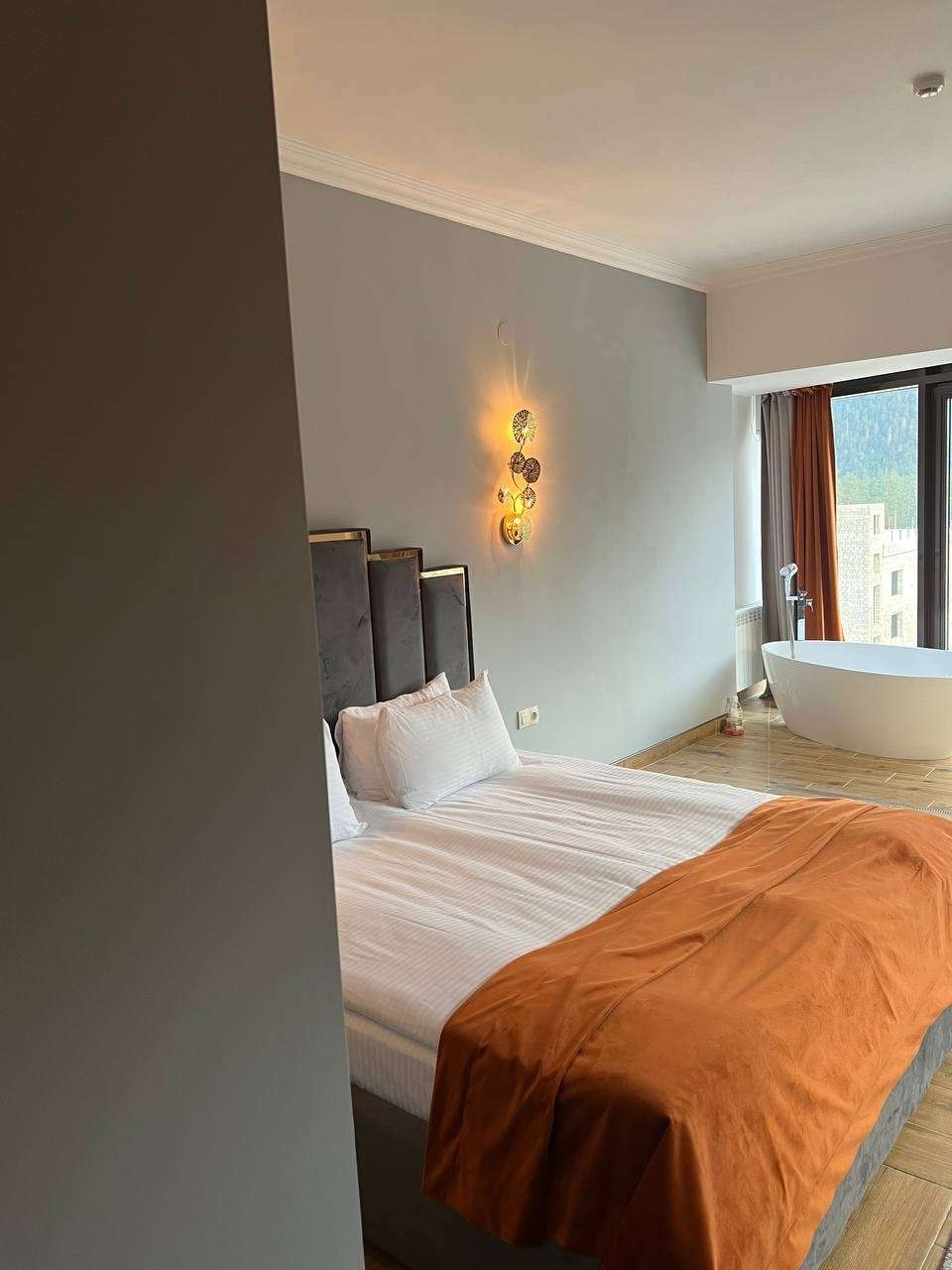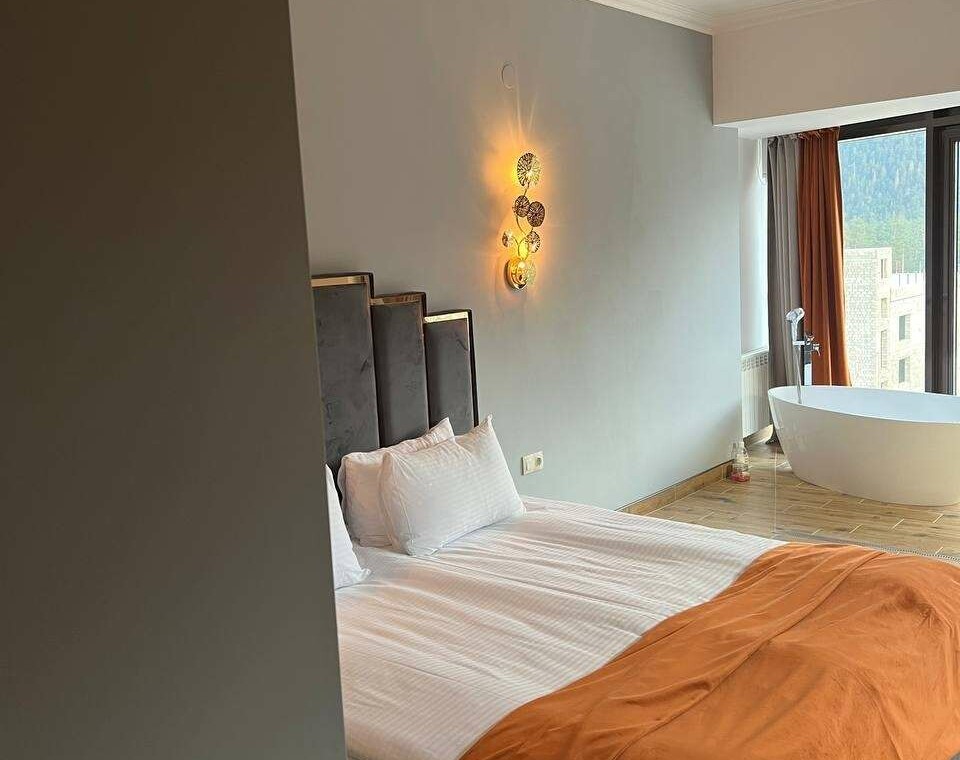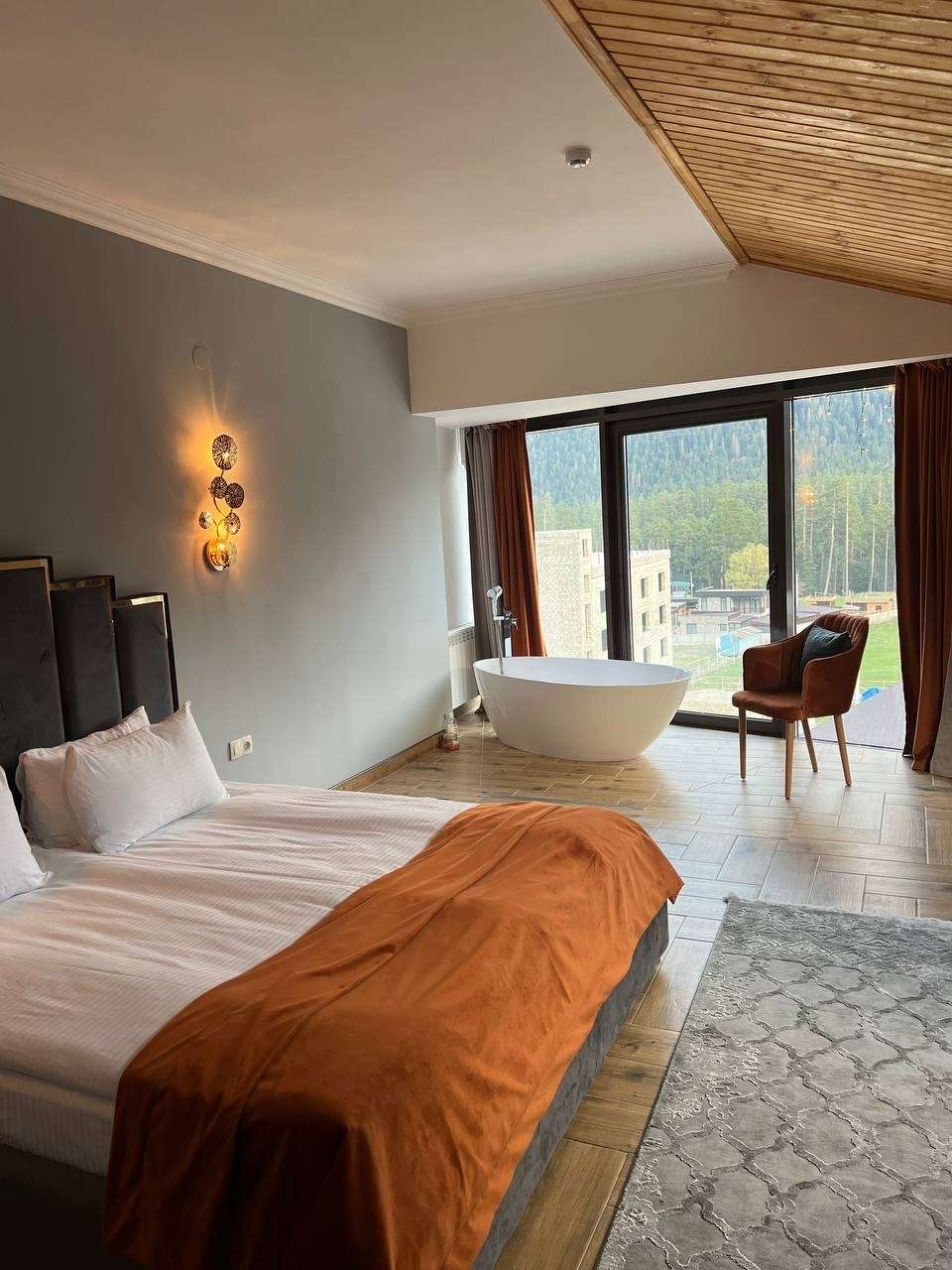 Плошадь: 35 кв.м. Вместимость: до 3 гостей (2 основных местах 1 на дополнительном месте) Мы рады Вам предложить номера категории «Deluxe room», площадью 35 кв.м. Насладитесь изысканным отдыхом после активно проведенного дня на горнолыжных склонах Архыза, остановившись в одном из номеров категории «Deluxe room». В номере имеется: доп. место – диван, мини-бар, Wi-Fi, спутниковое ТВ, чайный набор, тапочки, халат, фен, теплые полы, банные принадлежности. Панорамные окна добавят комфорта и откроют великолепный вид на природную красоту Архыза. Дети до двух лет размещаются – бесплатно.
