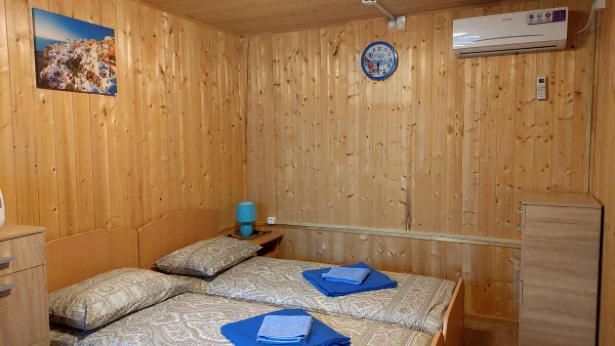 Комфортабельный домик с двумя отдельными номерами. Номер рассчитан на двоих (2 односпальные кровати) с дополнительным местом (креслом-кроватью) для ребенка. В номере свой санузел с горячей водой и отдельная терраса, а также сплит-система, холодильник, телевизор, чайник, мультиварка, микроволновая печь и посуда. До моря расстояние не более 40 метров. Можно снять отдельный номер или домик целиком.