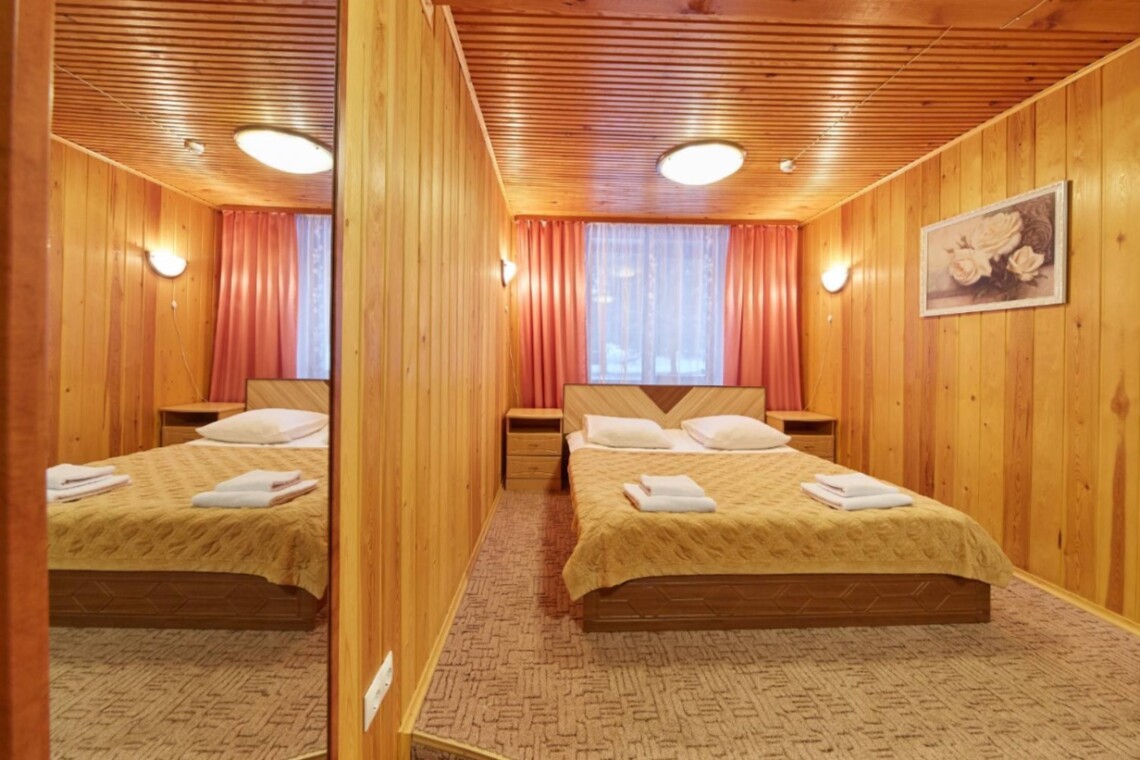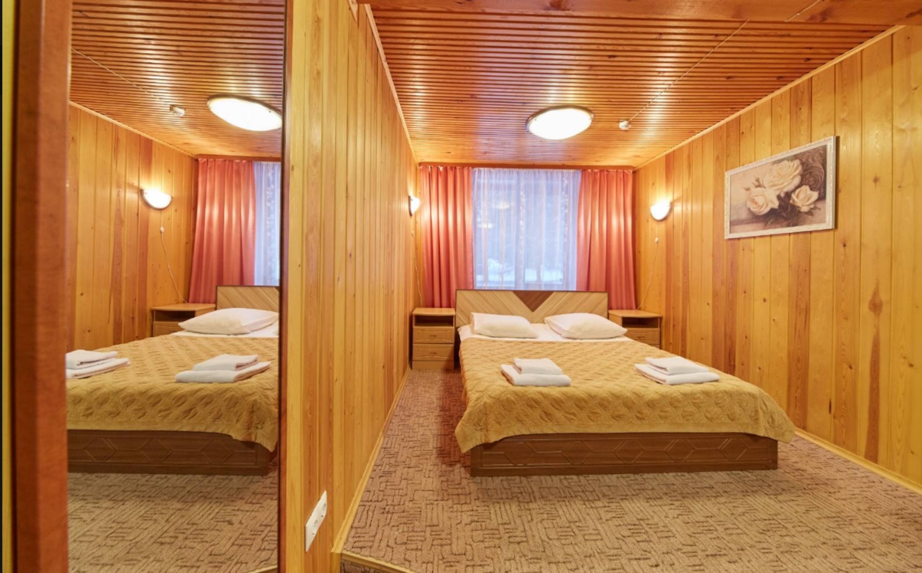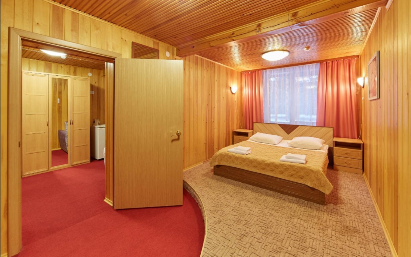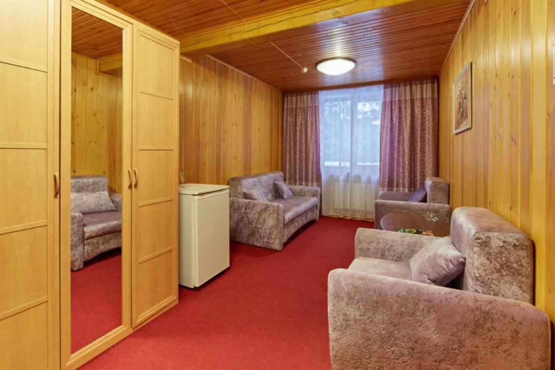 Номера двухместные. В двухкомнатном номере: в спальне — большая двуспальная кровать, телевизор, шкаф для одежды, прикроватные тумбочки; в небольшой, но уютной гостиной — мягкий диванчик или кресла, столик, чайник, чайные пары.
