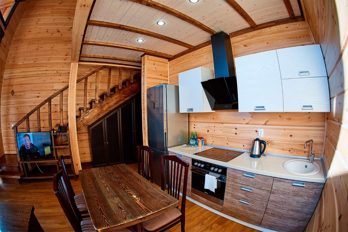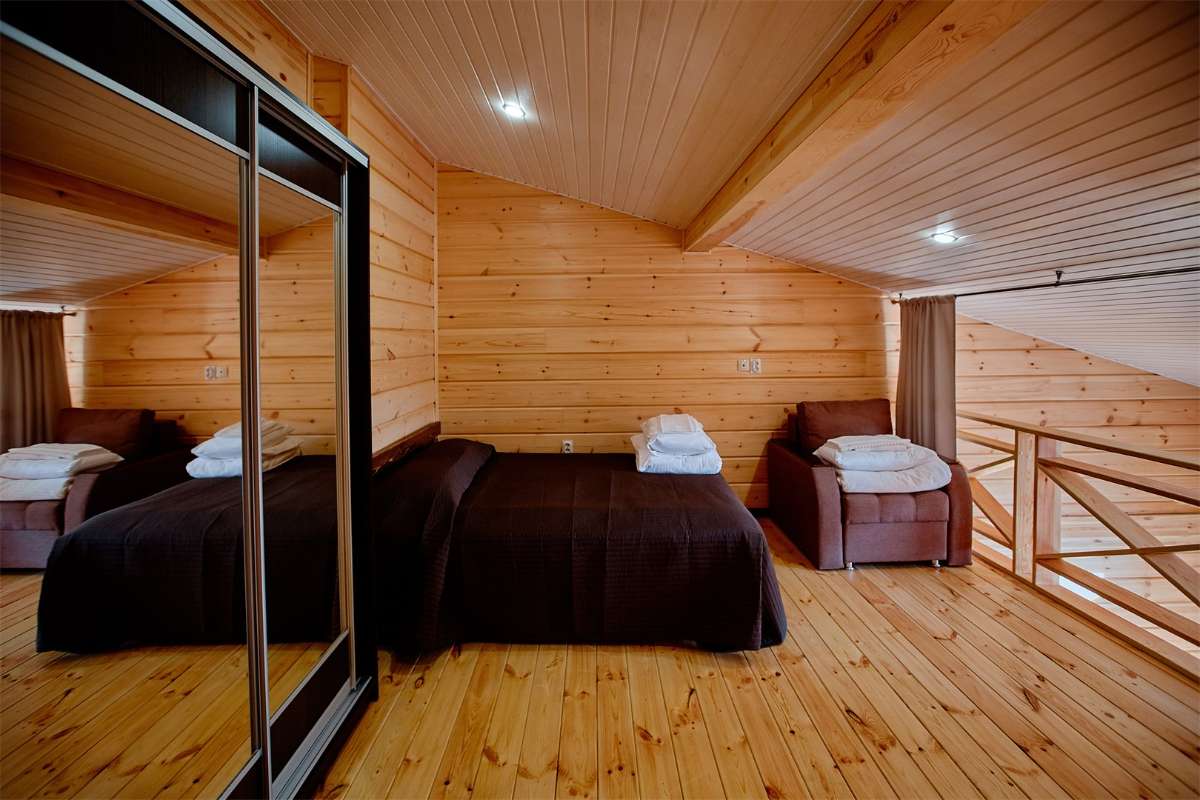 • 4 жилых корпуса: 3 двухэтажных оригинальных корпуса из вековой лиственницы и пятиэтажный