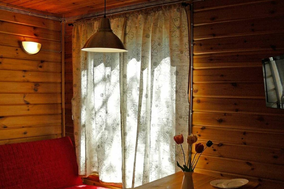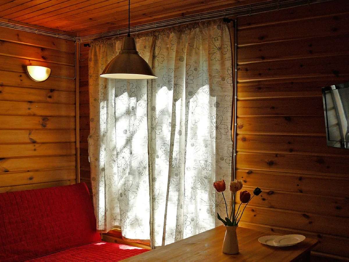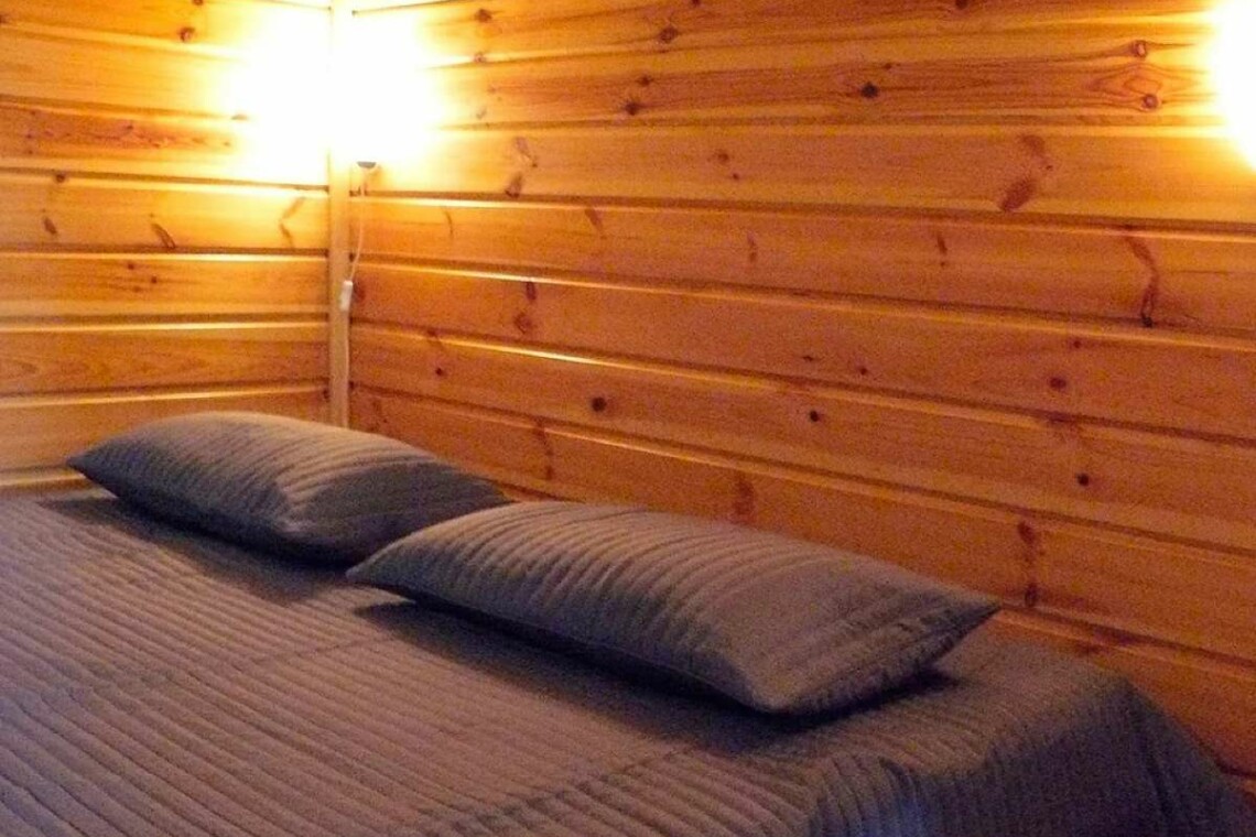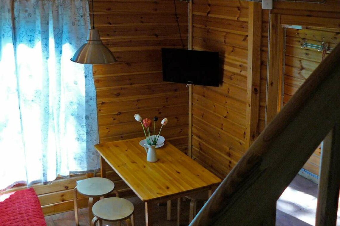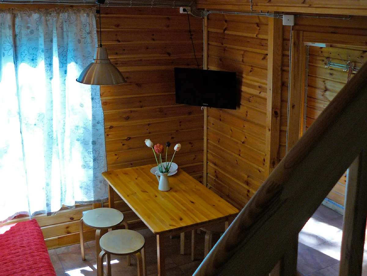 Кухня оснащена двухконфорочной электроплитой, микроволновой печью, двухкамерным холодильником и чайником. Набор посуды рассчитан на проживание 6-и человек.