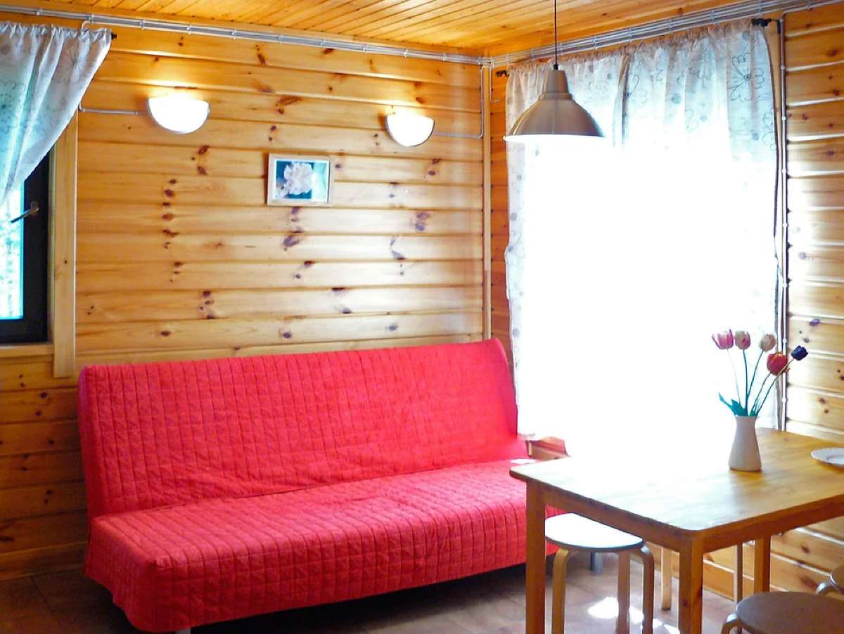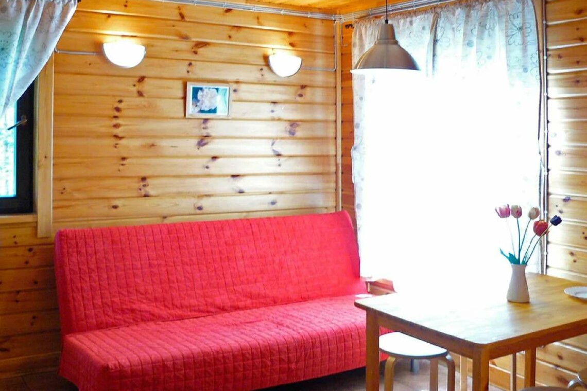 Гостиная меблирована столом со стульями, комодом, и раскладным диваном-кроватью (два дополнительных спальных места).