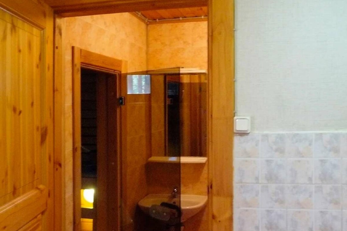 На втором этаже располагаются: спальня с двуспальной кроватью, спальня с двумя односпальными не сдвигаемыми кроватями, дополнительный санузел с раковиной.