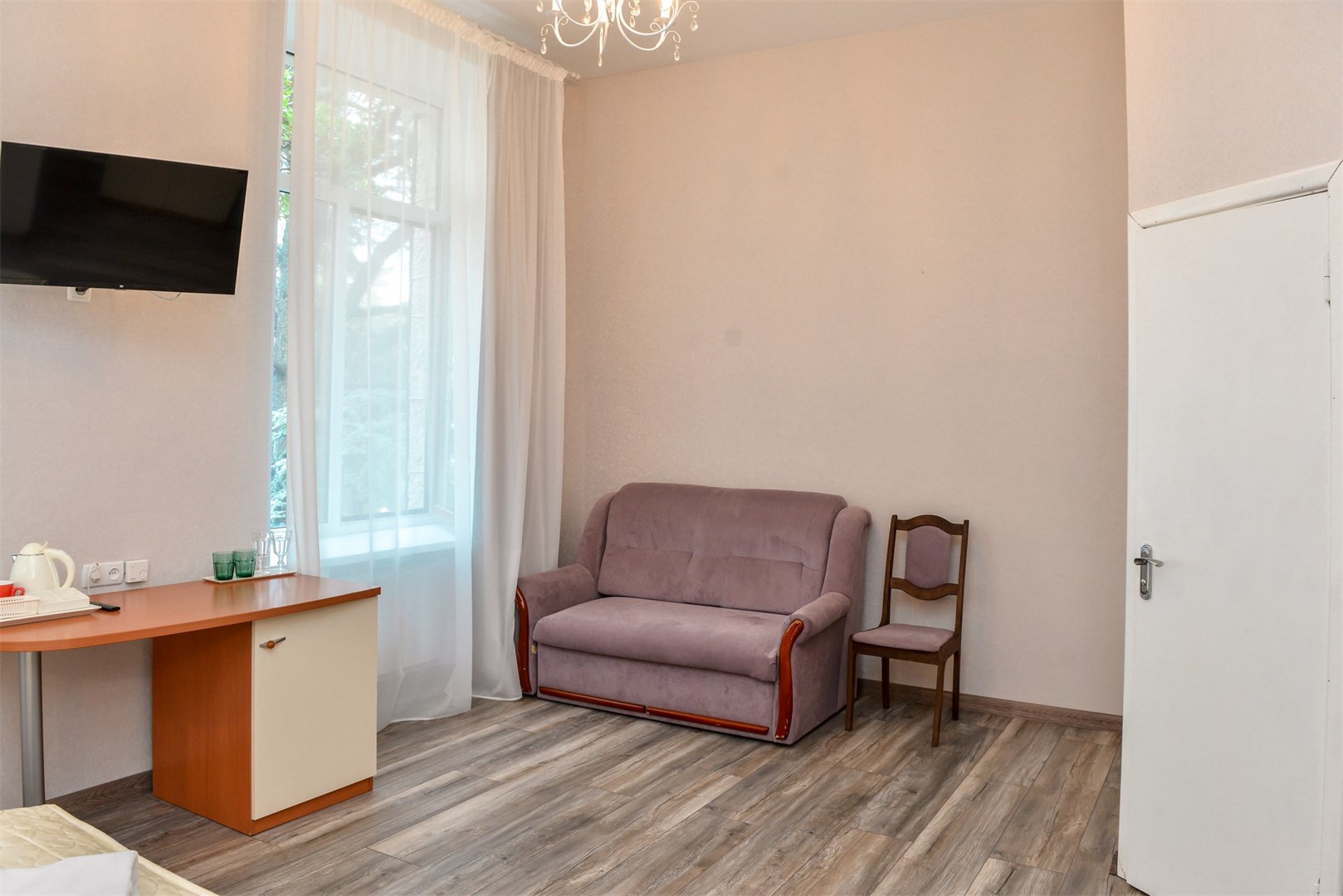 Для комфортного размещения госевой дом предлагает 19 номеров категорий стандарт и полулюкс. Номера оснащены всем необходимым для Вашего комфортного отдыха. На всей территории Гостевого дома работает Wi-Fi. Из некоторых номеров открывается потрясающий вид на парк и море.