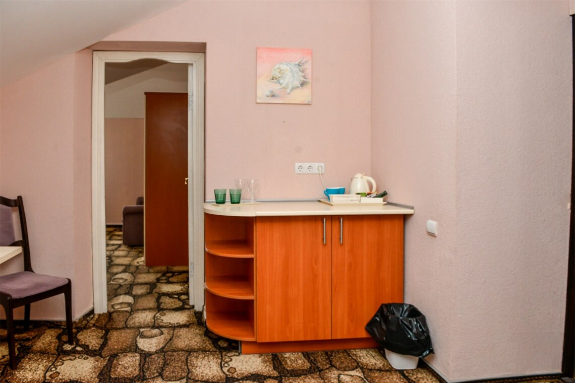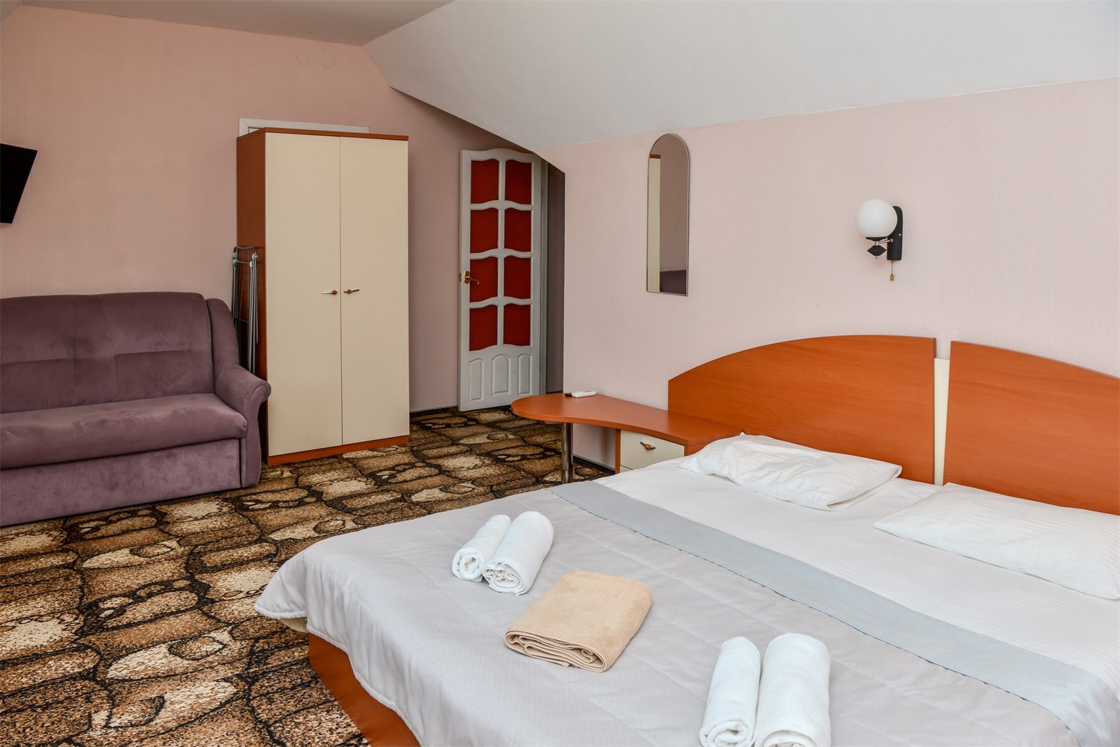 В номере: двухспальная кровать, шкаф для одежды, ТВ, холодильник, центральная система кондиционирования, Wi-Fi, санузел (душ, умывальник , туалет, принадлежности для душа, полотенца, фен), чайная станция, посуда, сушилка для белья.