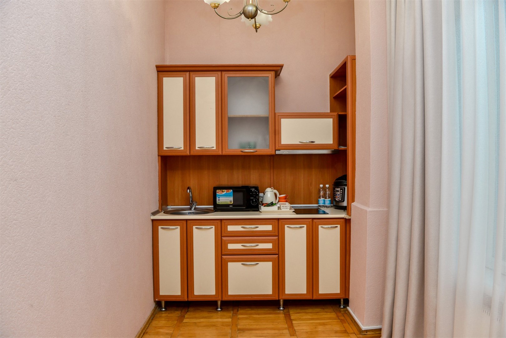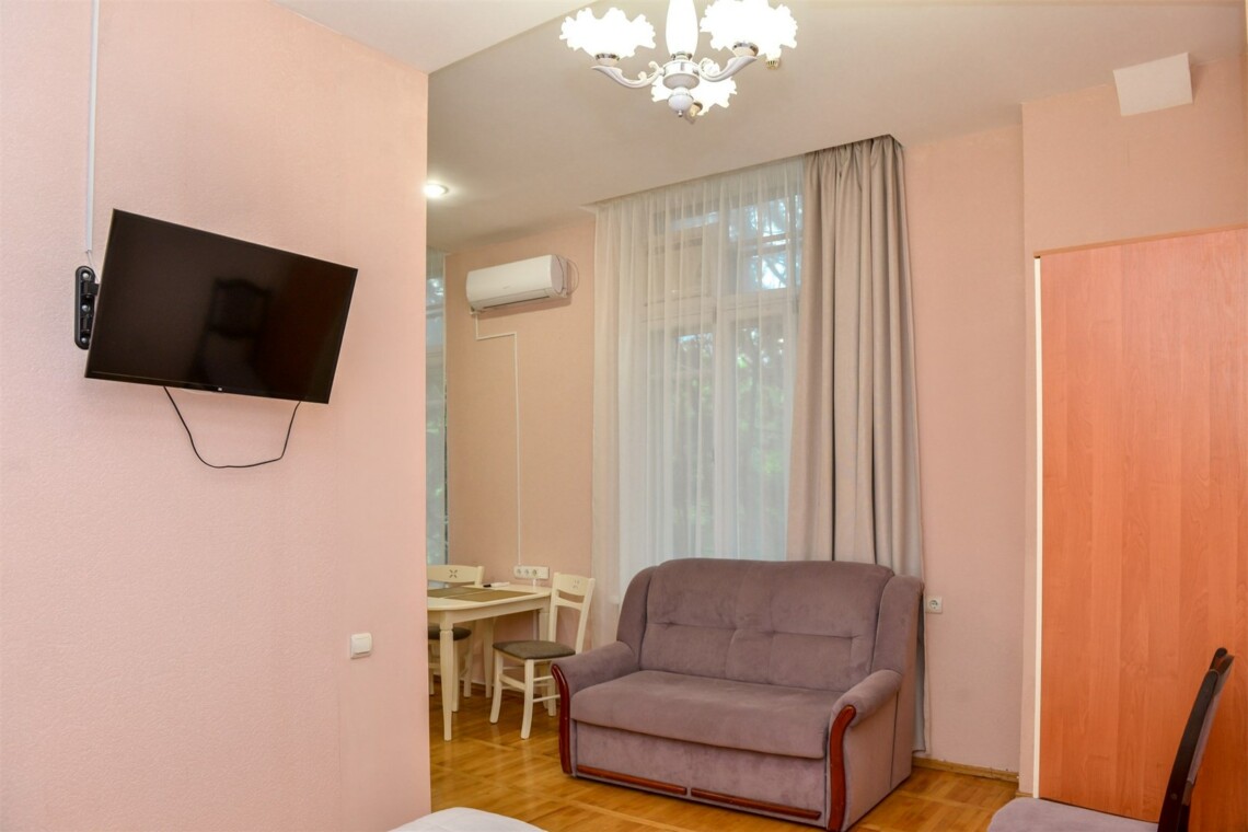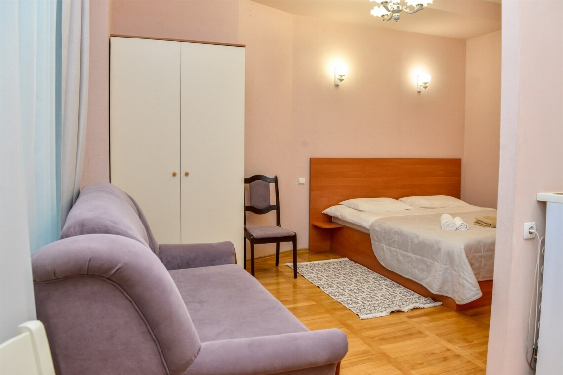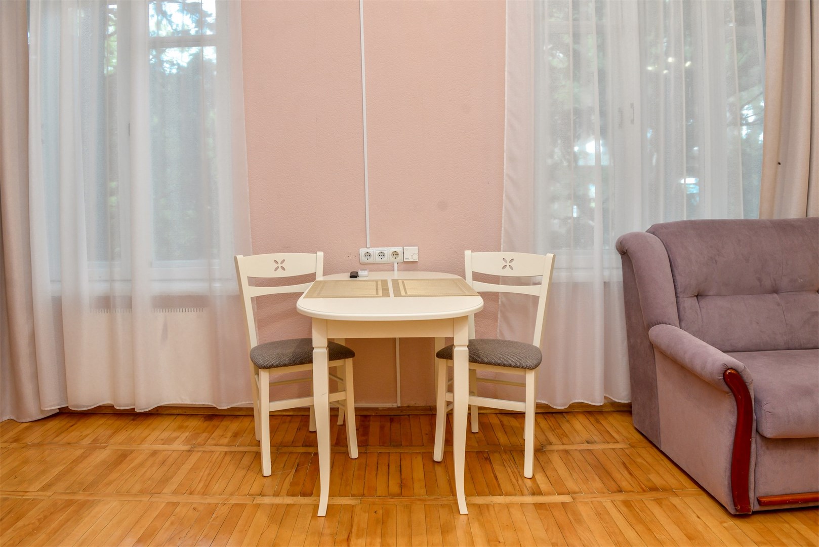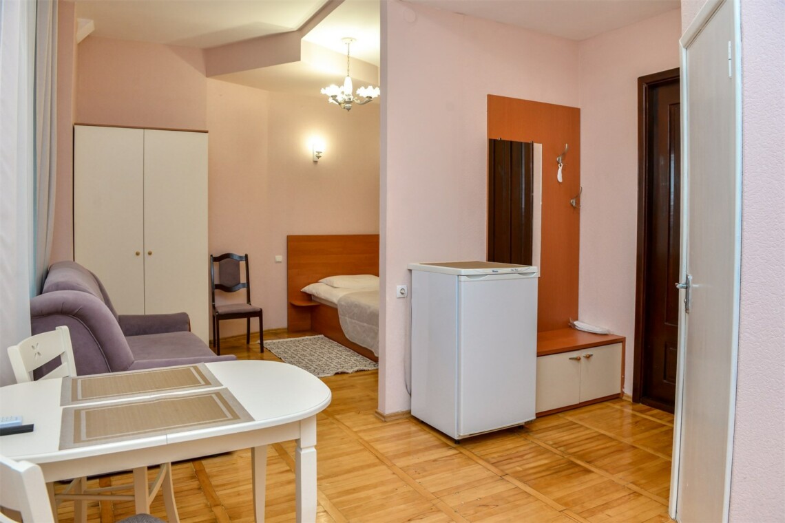 Студио – уютный, светлый номер с кухней. Подходит для комфортного размещения семьи с ребёнком или компании взрослых. Имеется возможность добавить дополнительные места.