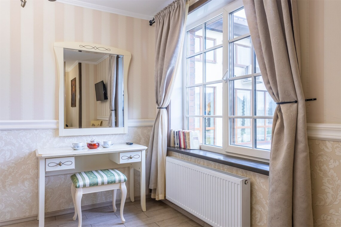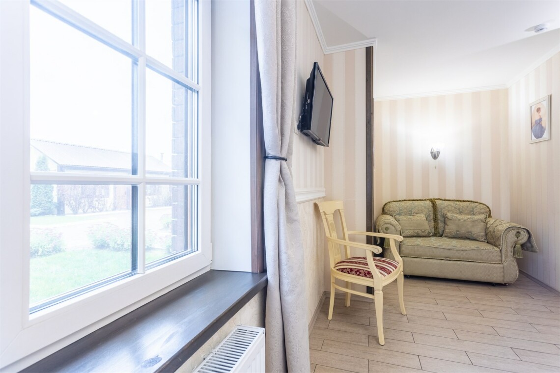 “Остров-Парк” — атмосферный ресторан и уютный отель на 18 номеров в городе Остров. Находится на берегу реки Великой с живописным видом на самую узнаваемую достопримечательность Острова – цепные мосты XIX века и на Спасо-Казанский Симанский монастырь. Отель равноудалён от Пскова, Старого Изборска, Печор и Пушкинских гор. Поэтому именно отсюда удобнее знакомиться с главными достопримечательностями Псковской области. Гостям “Остров-Парка” доступна бесплатная парковка с системой видеонаблюдения, детская площадка, специальные зоны для пикника, лобби-бар, летнее кафе и стол для пинг-понга. Для любителей активного отдыха оборудована пристань для сплавов на каяках по реке Великой. Сплавляться можно самостоятельно или воспользоваться готовыми маршрутами, которые придутся по душе и активным путешественникам, и семьям с детьми. Отель предлагает для проживания номера разных категорий, которые подойдут как для туриста, так и тех, кто собирается в командировку в Остров. Каждый из них выполнен в уникальном дизайне и имеет своё название. Все номера подходят для краткосрочного и длительного проживания, так как оборудованы всем необходимым: от душа и туалета — до скоростного Wi-Fi, мини-бара и фена. Ресторан “Остров-Парка” порадует спокойной атмосферой, лёгкой музыкой и разнообразным меню: европейская кухня, а так же пицца, суши, ролы. Номер категории Комфорт располагается на первом этаже гостиницы. Оснащен душевой кабиной, TV, минибаром, феном, бесплатным WiFi.