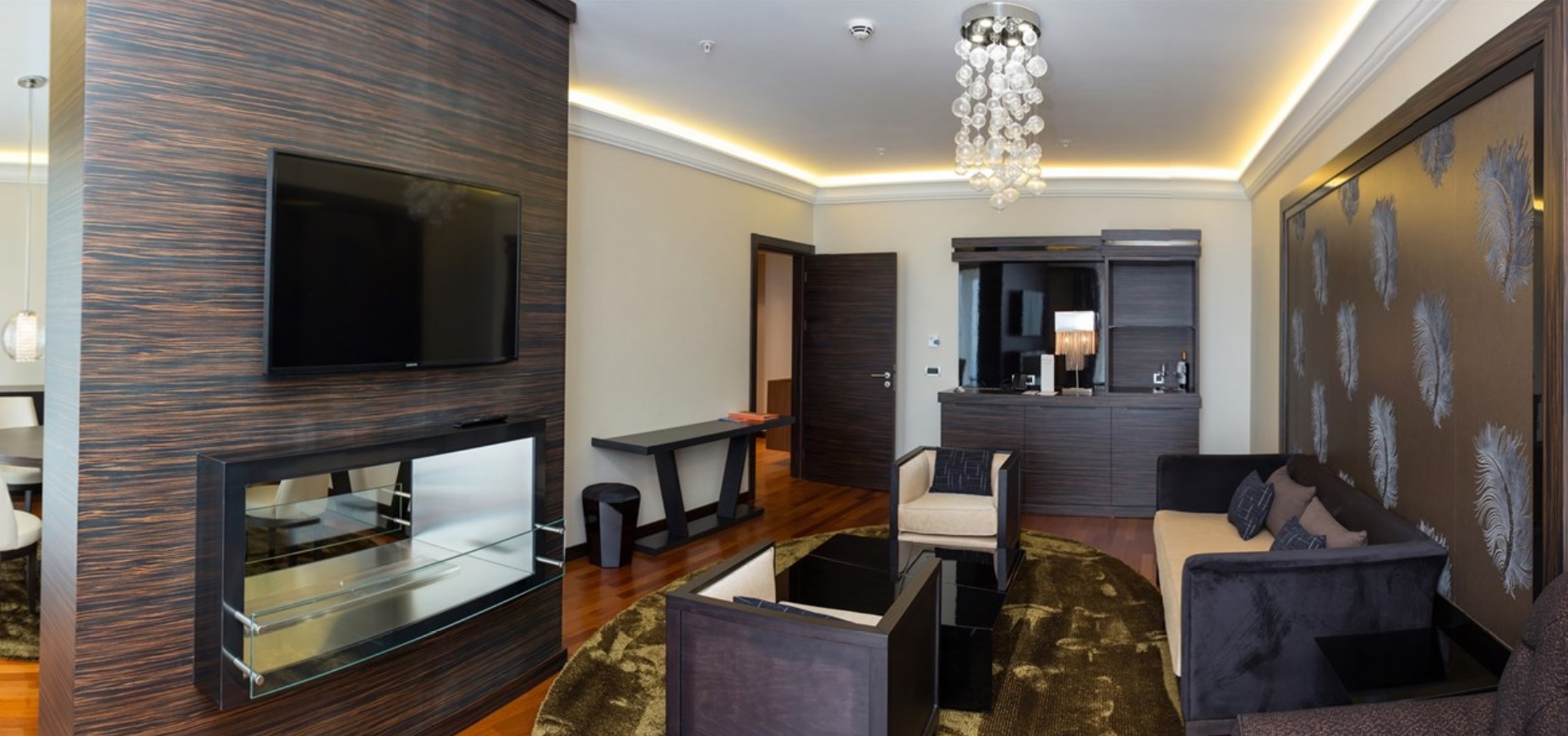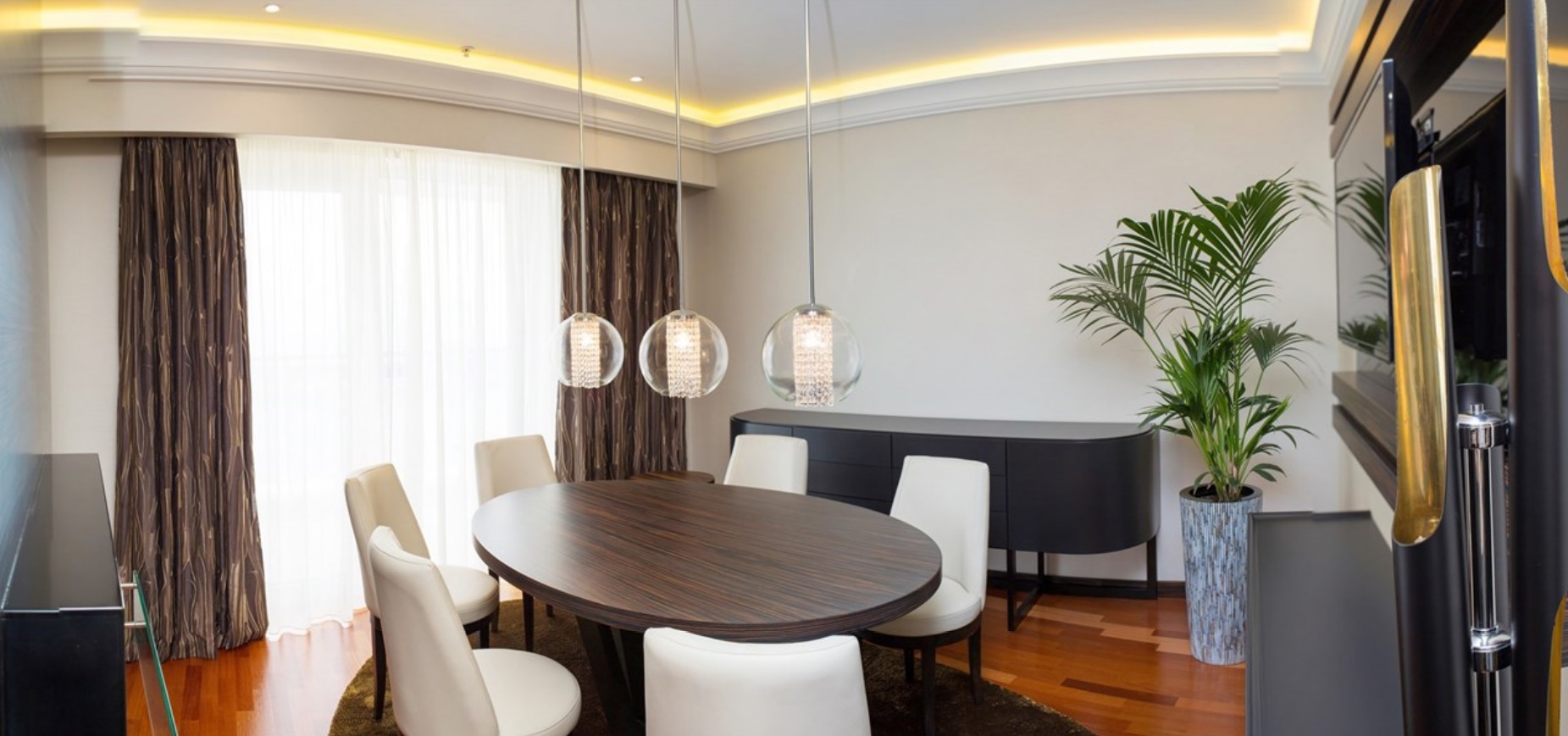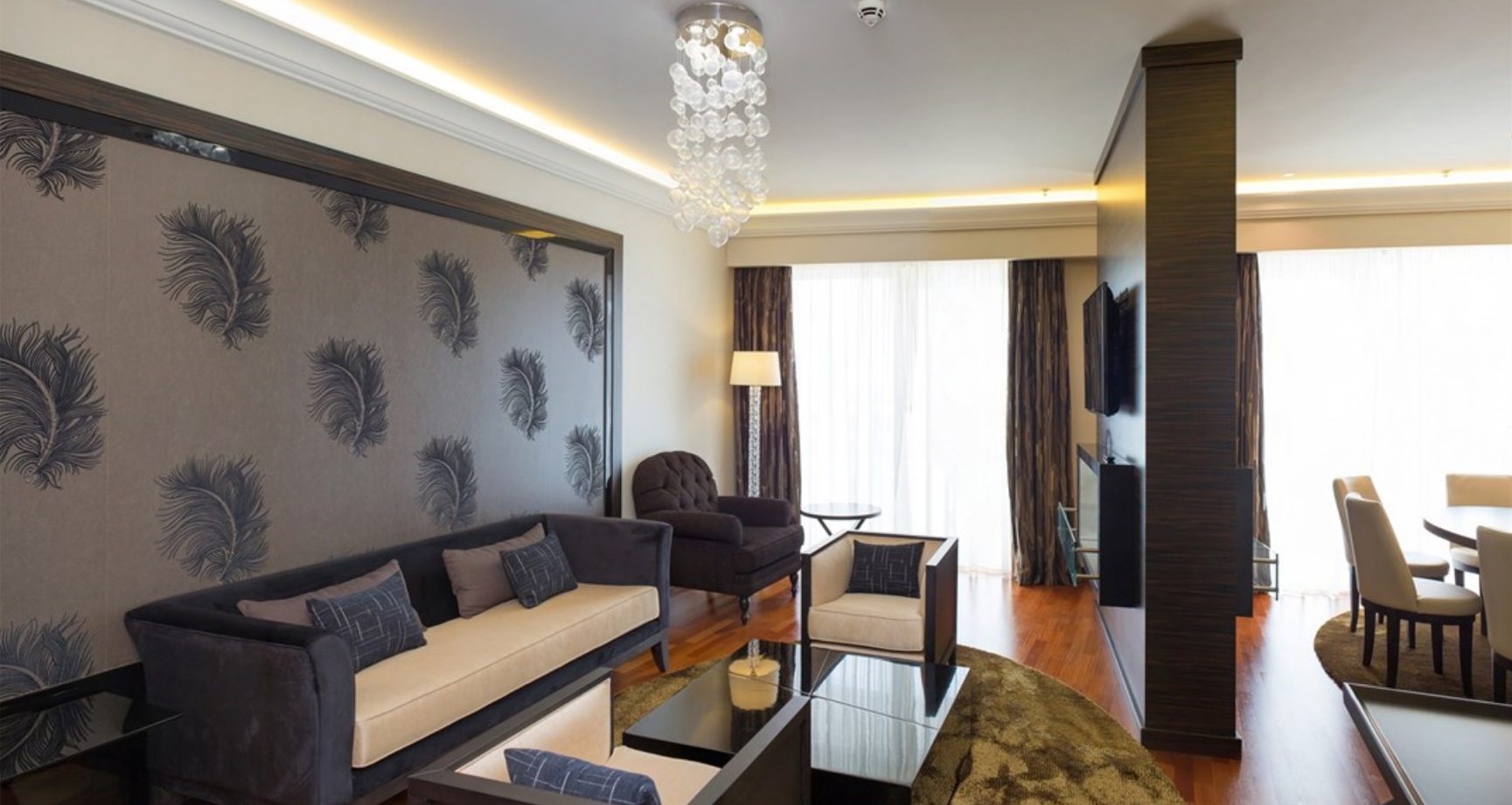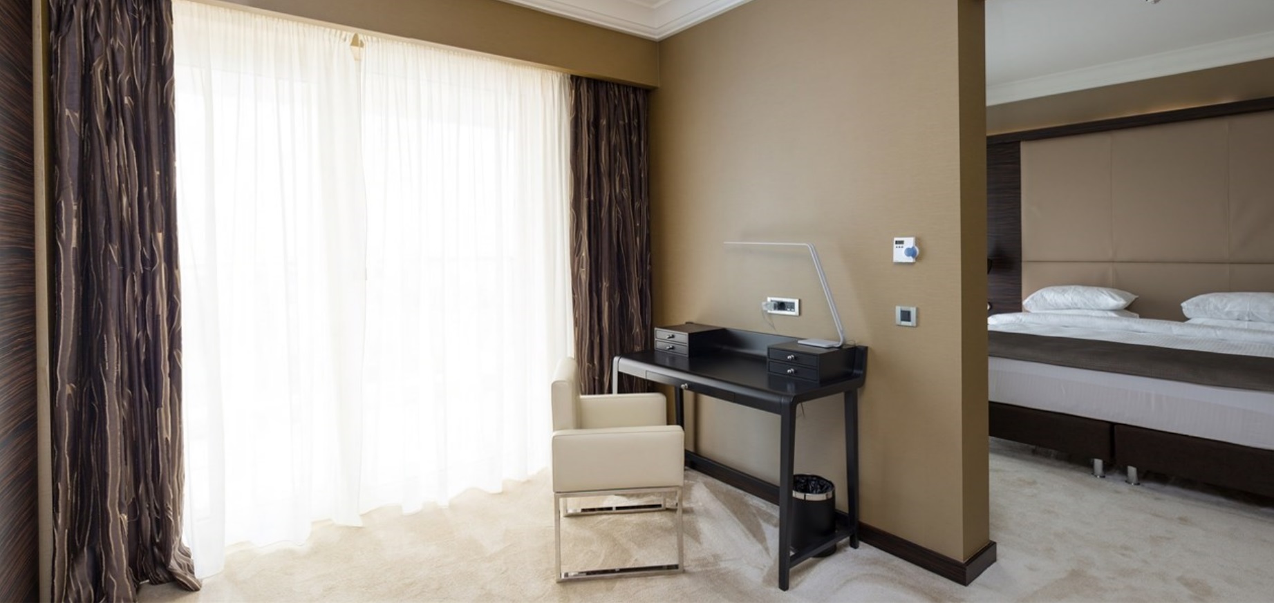 Президентский люкс общей площадью 132 кв.м являет собой один из лучших респектабельных номеров отеля «Имеретинский». Предлагает безукоризненный дизайн и безупречный комфорт. Номер с панорамным видом на Черноморское побережье и Кавказские горы оснащен классической мебелью. Президентский люкс тематически разделен на: конференц-зал, столовую, гостиную, спальню, ванную комнату с ванной и душем и гостевой туалет. Оснащение рабочей зоны создает атмосферу уединенности и помогает держать руку на пульсе бизнеса. Номер категории “Сюит” с балконом.