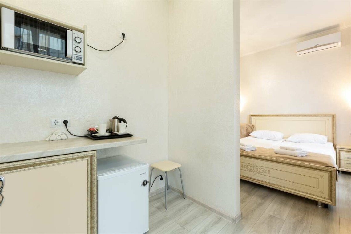 3. Низкая цена. Номера небольшие по площади, поэтому цены дешевле конкурентов в этом районе. Есть все что нужно для комфортного отдыха. Каждый номер имеет санузел с душевой, кондиционер, отопление, холодильник, чайник. В некоторых номерах есть мини-кухня, стиральная машина.