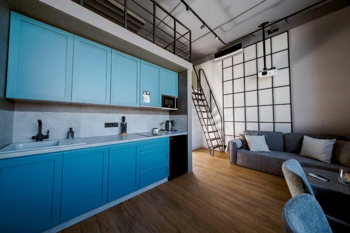 На первом уровне: Шкаф для одежды, зеркало Журнальный столик, диван, проектор Кондиционер