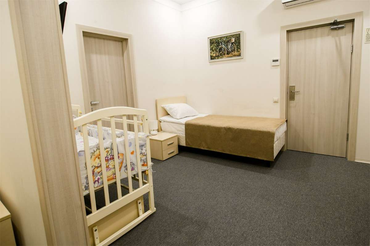 Семейный номер с двуспальной кроватью и одной односпальной кроватью.