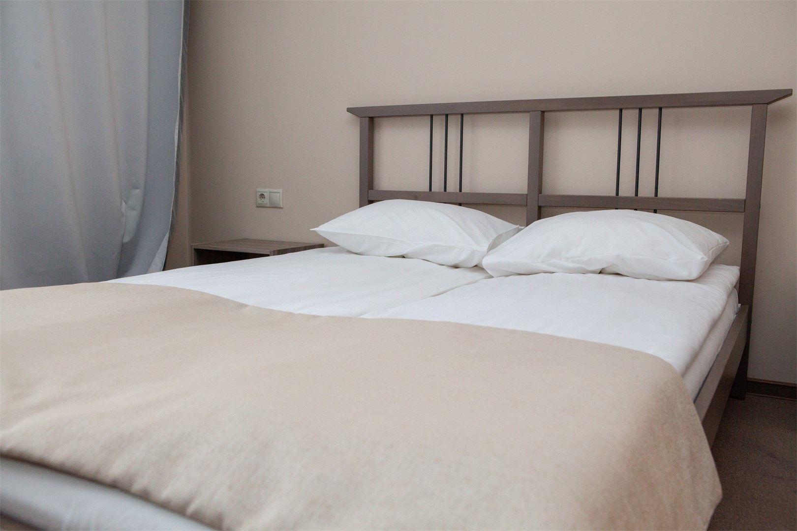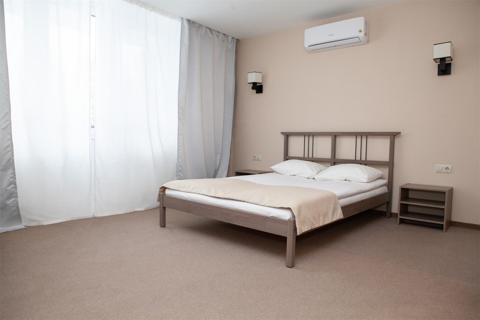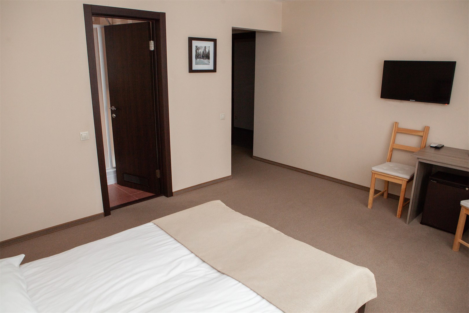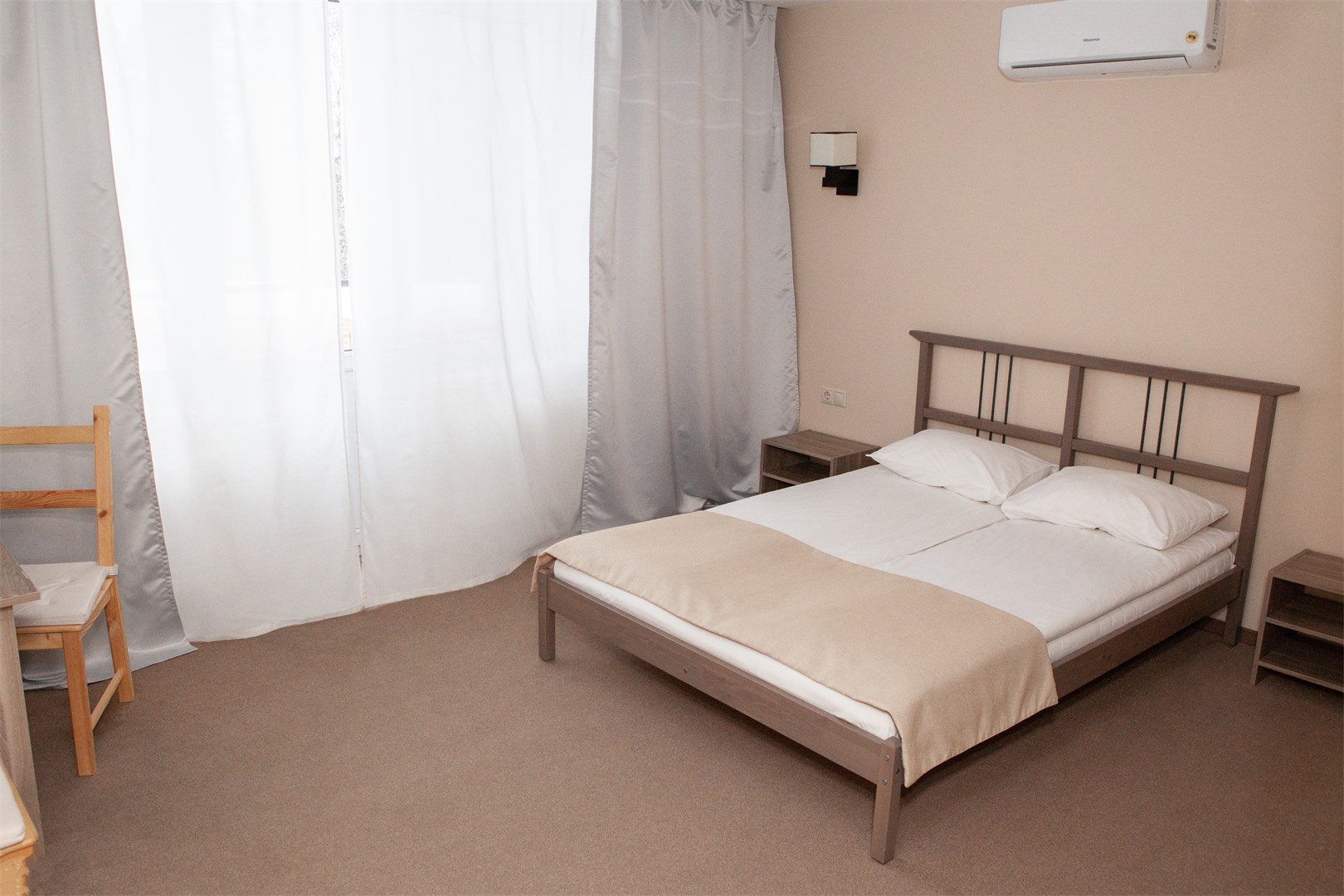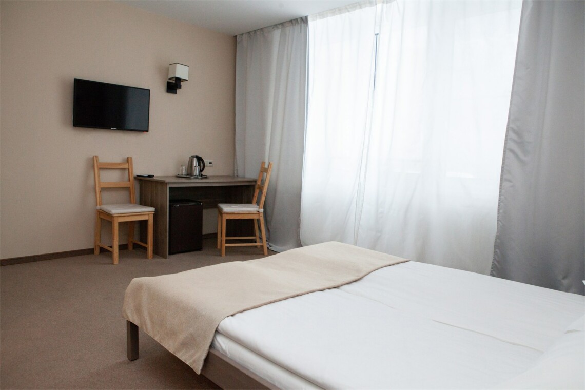 Однокомнатный номер с двумя односпальными объектами, санузлом с душевой кабиной, охват. Номер оборудован кондиционером, мини-холодильником, цифровым ТВ. 2 основных места. Wi-Fi в номерах .