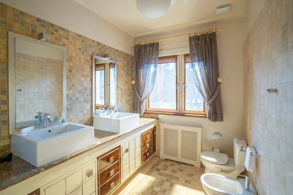 Четыре спальни с двуспальными кроватями, кабинет, гостиная с камином и большой столовой зоной, панорамный вид на Волгу. В доме четыре ванные комнаты и один гостевой санузел с полным набором косметических принадлежностей, набором полотенец и тапочек, имеется гладильный набор, кухня с необходимой посудой, большой стол в столовой зоне, электрочайник и кофемашина, микроволновая печь, газовая плита, холодильник, стиральная машина, плазменные панели ТВ, телефон внутренней связи, фен, WI-FI.
