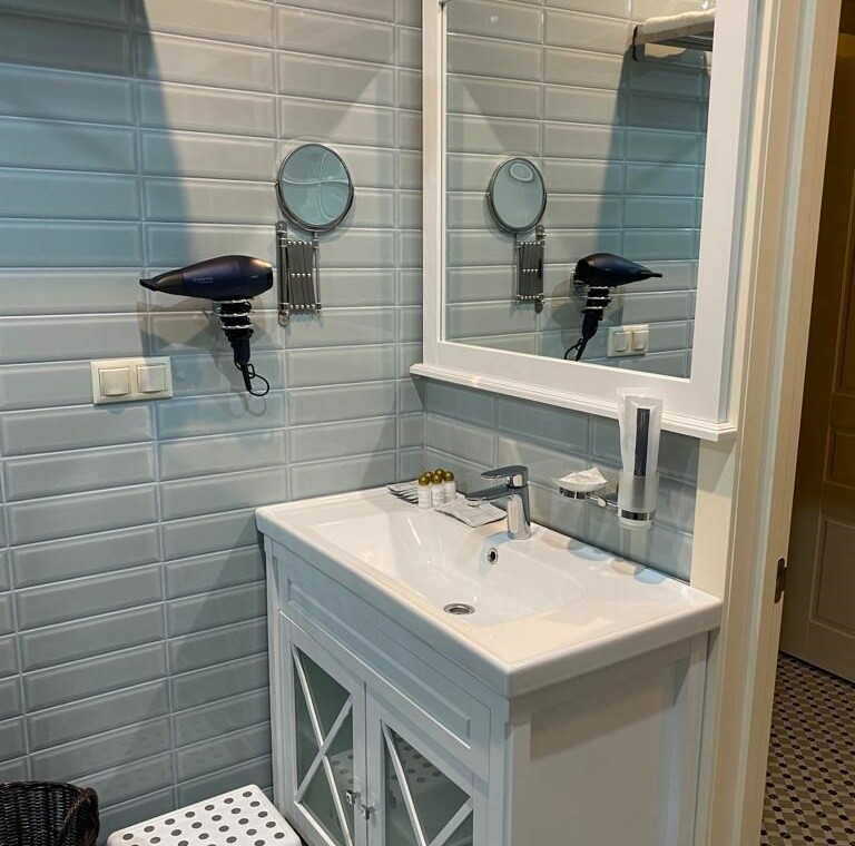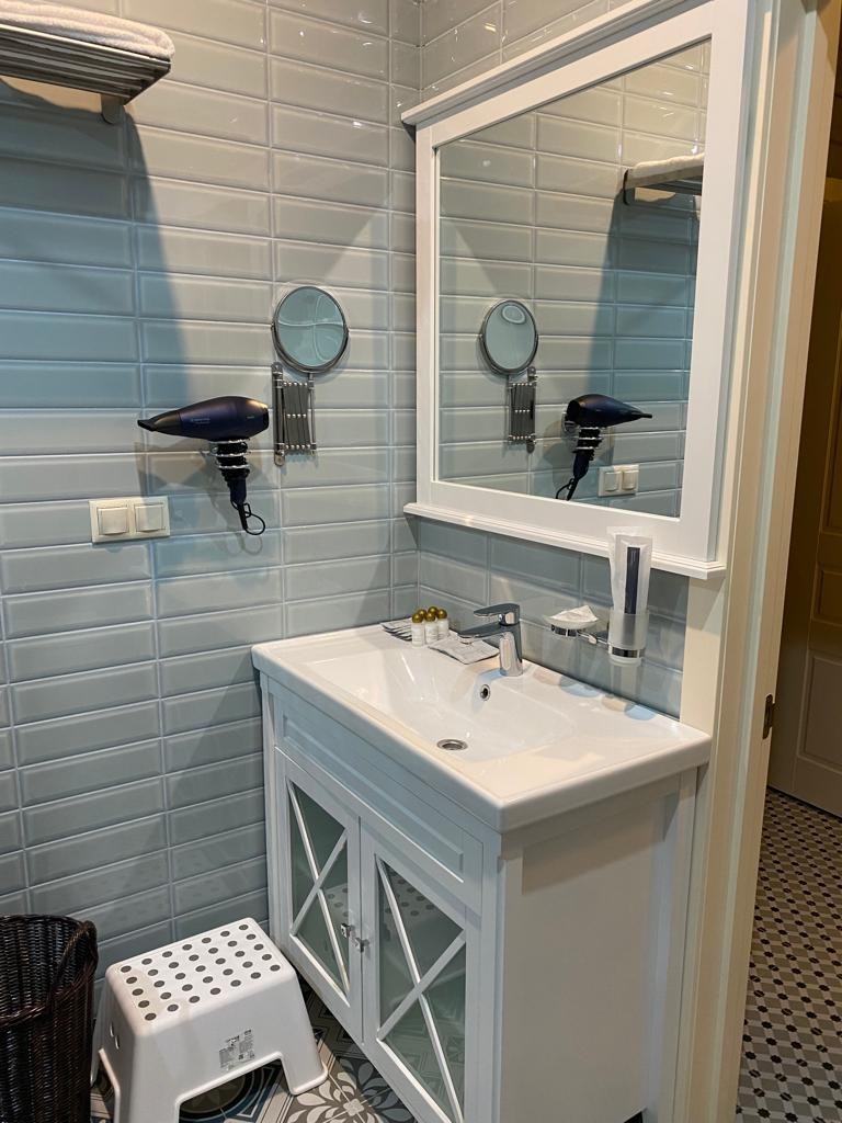 Здесь есть практически все, чтобы каждый гость ощущал себя как дома: одна ванная комната с душевой кабиной и полным набором косметических принадлежностей, тапочки, набор полотенец, дополнительный санузел на втором этаже, гладильный набор, кухня с необходимой посудой, электрочайник и кофемашина, микроволновая печь, газовая плита, холодильник, стиральная машина, плазменные панели ТВ, телефон внутренней связи, фен, WI-FI.