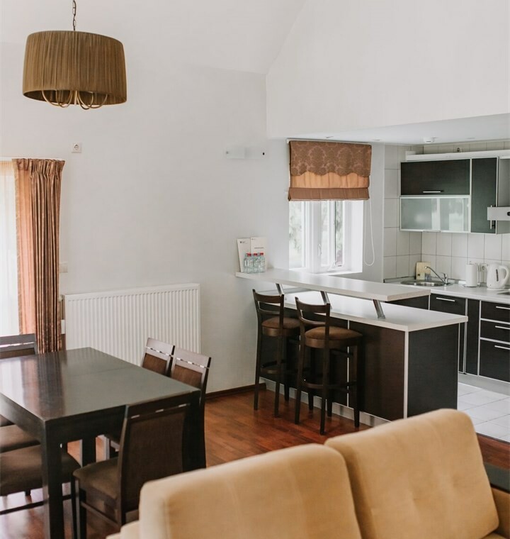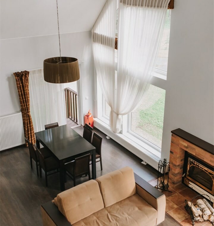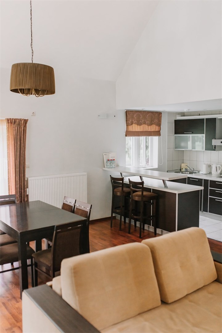 Уютный двухэтажный коттедж площадью 146 кв. м., расположенный на второй береговой линии, с просторной гостиной с камином, оборудованной кухней-столовой, тремя спальными комнатами на разных этажах и двумя туалетными комнатами с душем и ванной-джакузи. Кухня с электроплитой, вытяжкой, холодильником и посудомоечной машиной, набором посуды на 6 персон. К услугам гостей – бесплатный Wi-Fi. Количество основных мест – 6, дополнительных мест – 2.