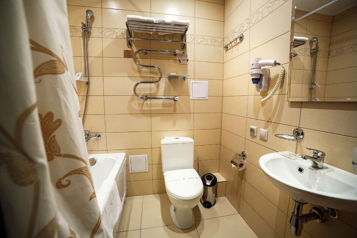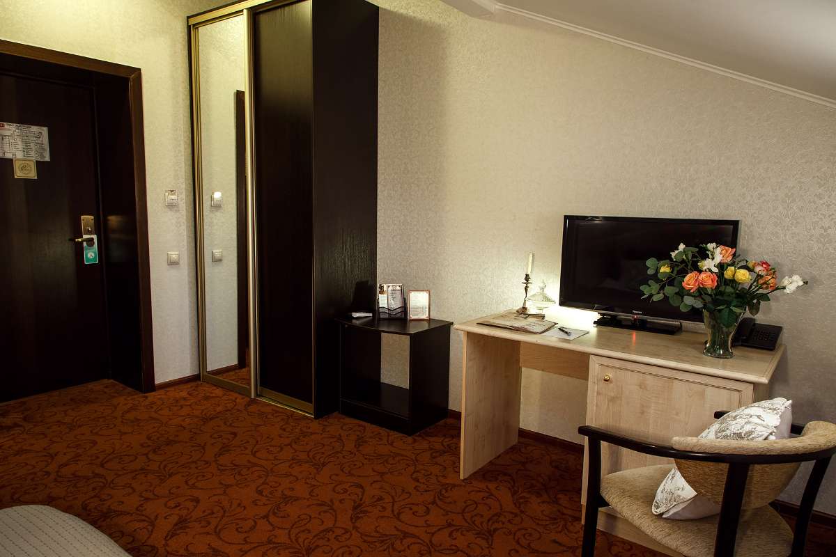 Все просторные звукоизолированные номера оборудованы кондиционером, TV с плоским экраном, кабельными каналами, мини-баром*, сейфом, ковровым покрытием, средствами личной гигиены, феном, халаты и тапочки включены в люксы, в стандартные номера предоставляются по запросу.*