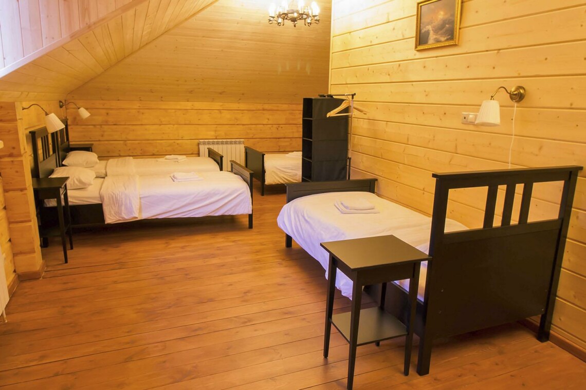 Обратите внимание, что проживание с домашними питомцами допускается за дополнительную плату в размере 500 рублей за животное. В комплексе доступны за доп. плату: бассейн, конный клуб, квадроциклы, теннис, футбол, волейбол, детская игровая комната, ресторан, баня.