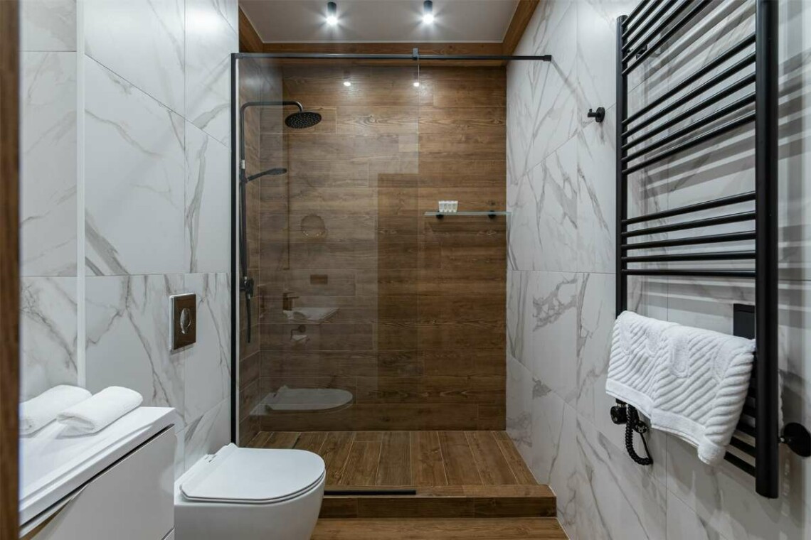 Двухкомнатный комфортабельный просторный номер, где стоит двуспальная кровать и большой раскладывающийся диван. В номере есть все удобства, установлен кондиционер
