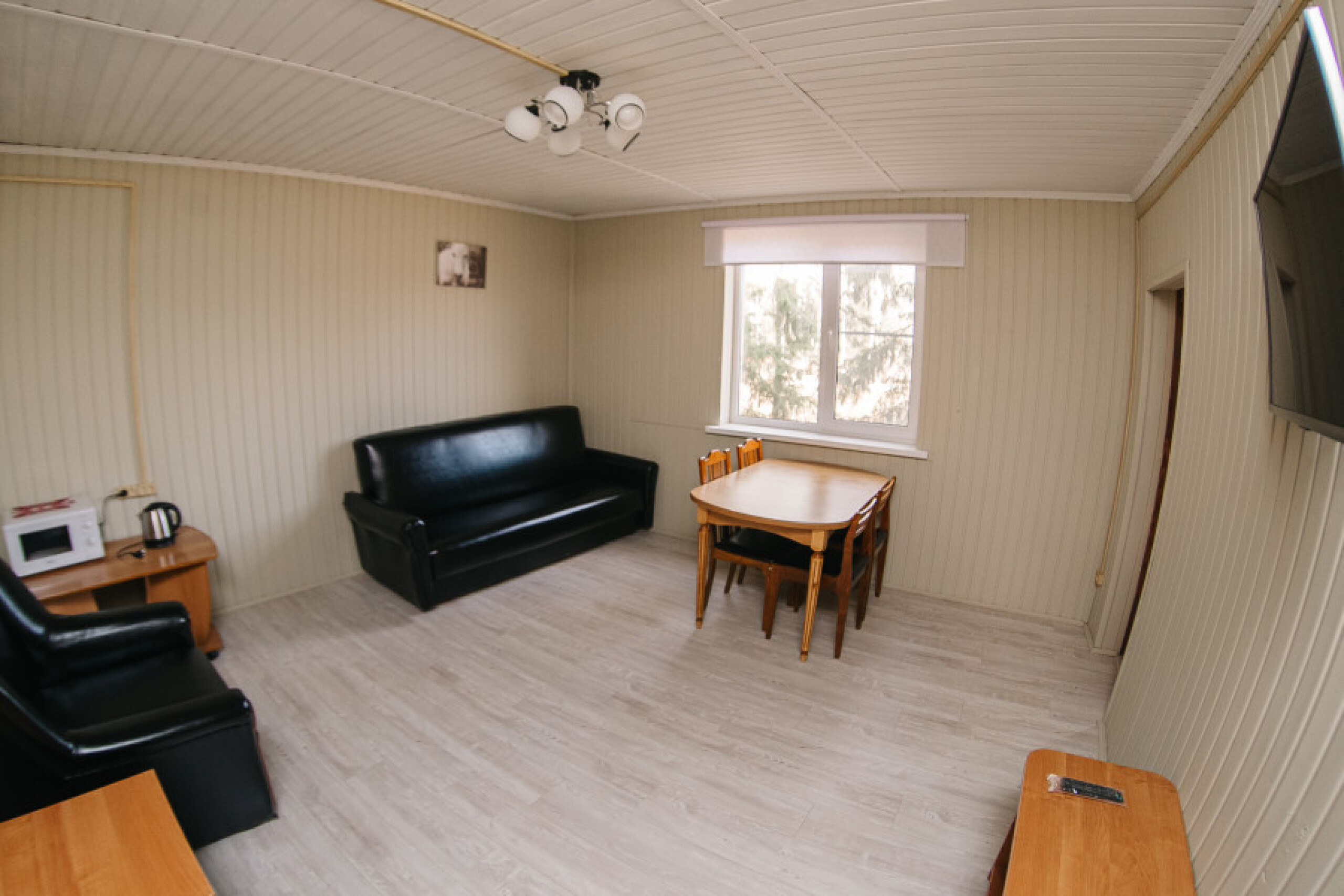 Описание: трехместный номер: оборудован двумя односпальными кроватями, диван и кресло-кровать. Все удобства в номере: душ, раковина, туалет. Для комфортного отдыха также имеются: телевизор, чайник, посуда, микроволновка, мини-холодильник.