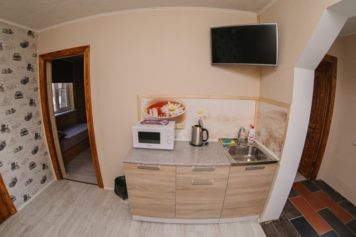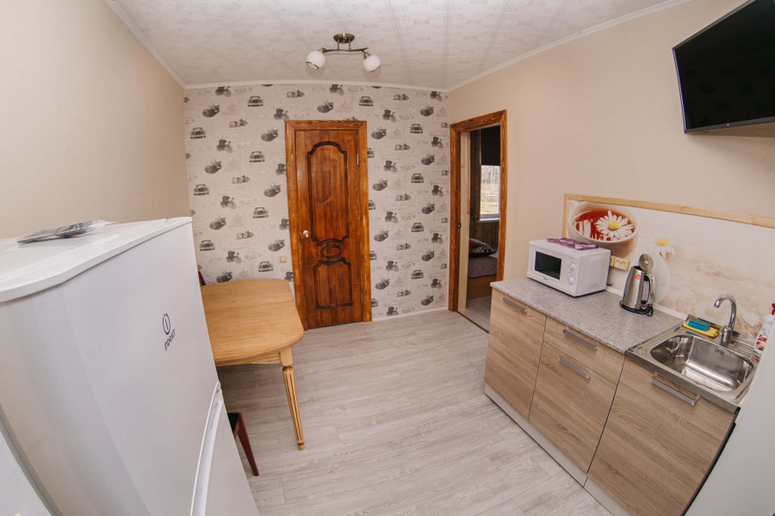 Описание: четырехместный номер: с кухней и 2-мя комнатами, кровати: 4-е одноместные. Все удобства в номере: душ, раковина, туалет. Для комфортного отдыха также имеются: телевизор, чайник, посуда, микроволновка, холодильник.