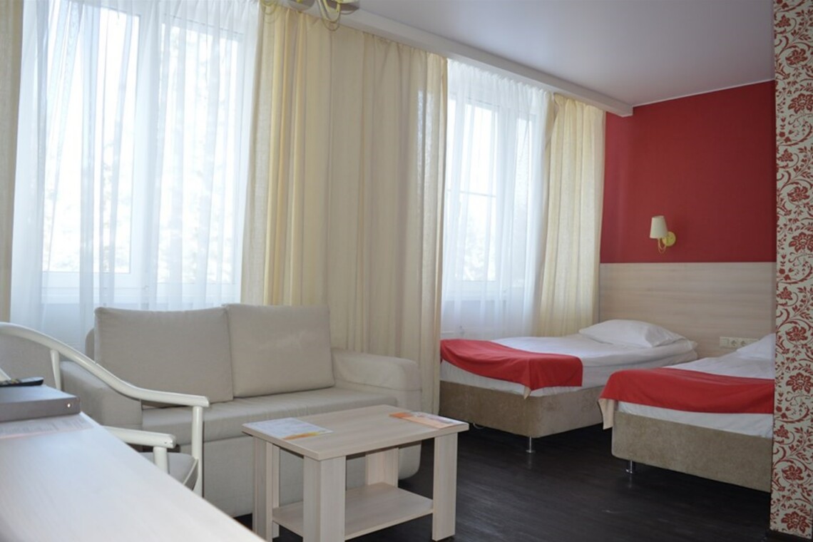 Улучшенный стандартный номер для комфортного проживания двоих человек. В номере расположено 2 односпальные кровати, диван. Дети до 5 лет проживают бесплатно без предоставления дополнительных мест, не превышая максимально допустимое количество человек в номере.