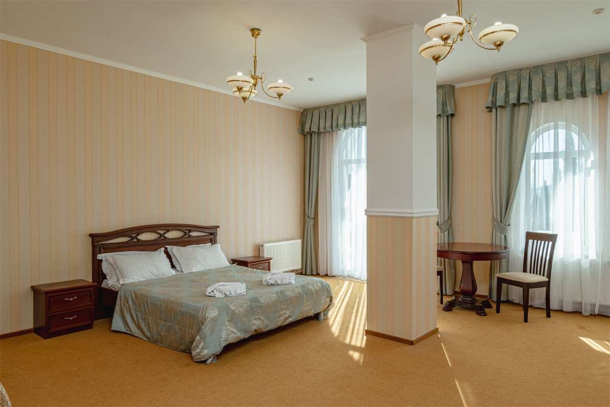 Однокомнатный номер повышенной комфортности общей площади – от 17 до 23,5 м.кв. В номере: одна двухспальная или две односпальные кровати, тумбочки, шкаф, туалетный столик с зеркалом, стулья. Санузел: ванна, раковина, унитаз. Дополнительные места не предусмотрены.