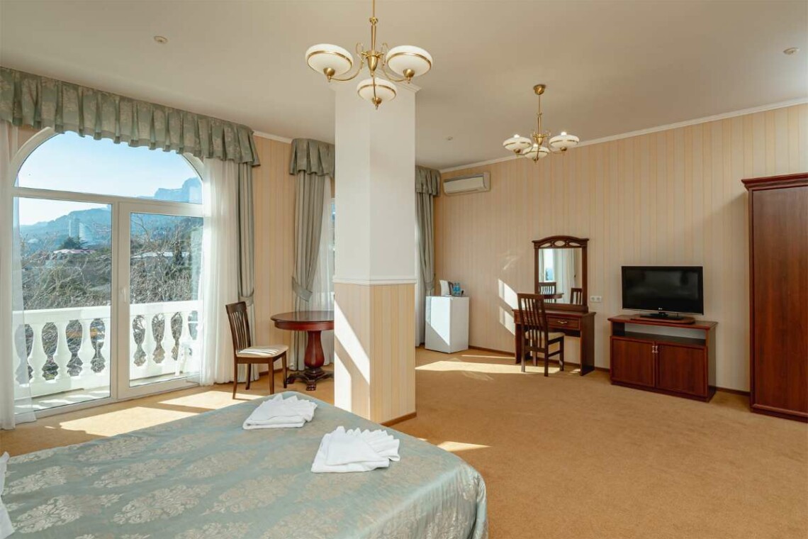 Гости парк-отеля отдыхают с питанием и без питания. Питание так же зависит от категории номера. Гости приглашаются в VIP-залы или в столовую. Промежуточное питание по системе «все включено» доступно с 10:00 до 22:00 в баре у бассейна, рядом с бассеном. В корпусе №1 работает лобби-бар. В межсезонье гостей приглашает фито-бар для дегустации крымских чаев и натуральных соков.