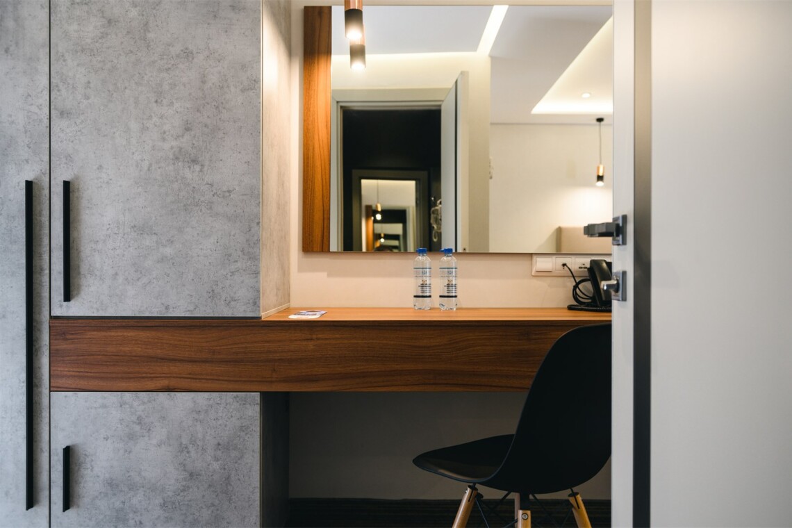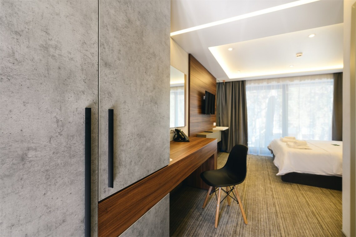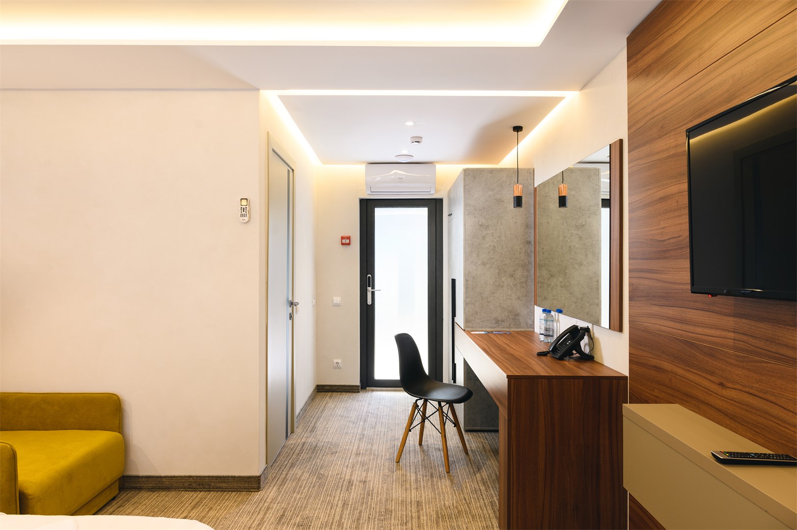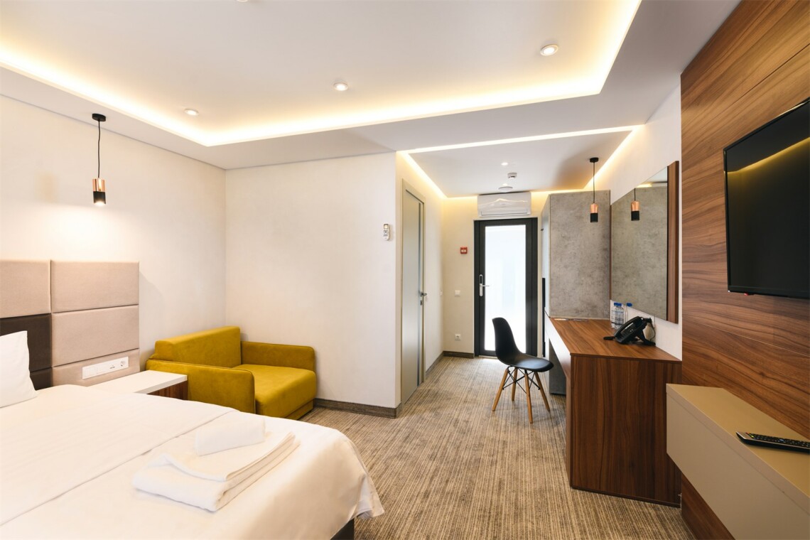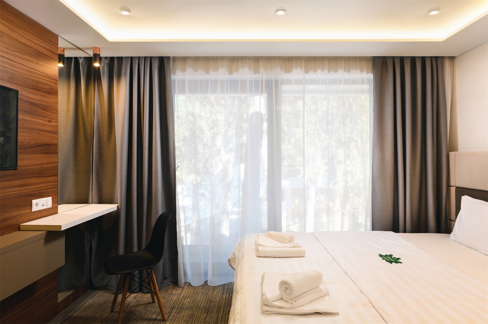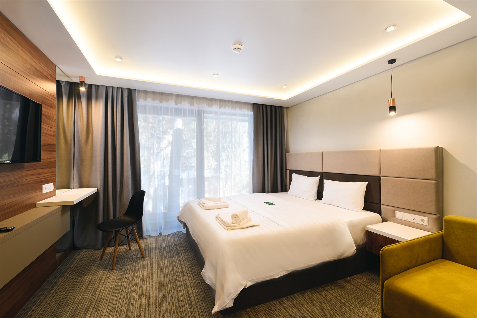 Номера оборудованы мягкой мебелью, кондиционерами, удобствами и удобствами.