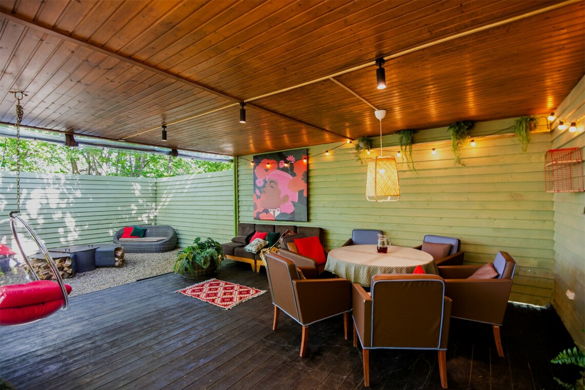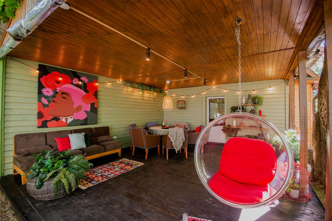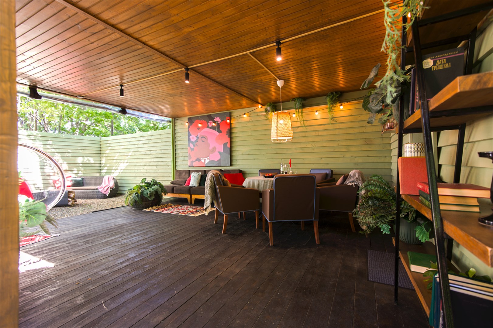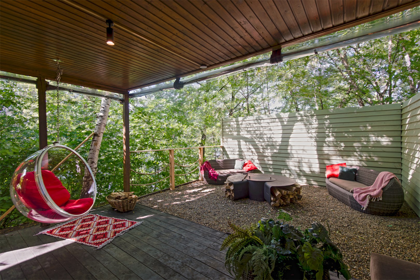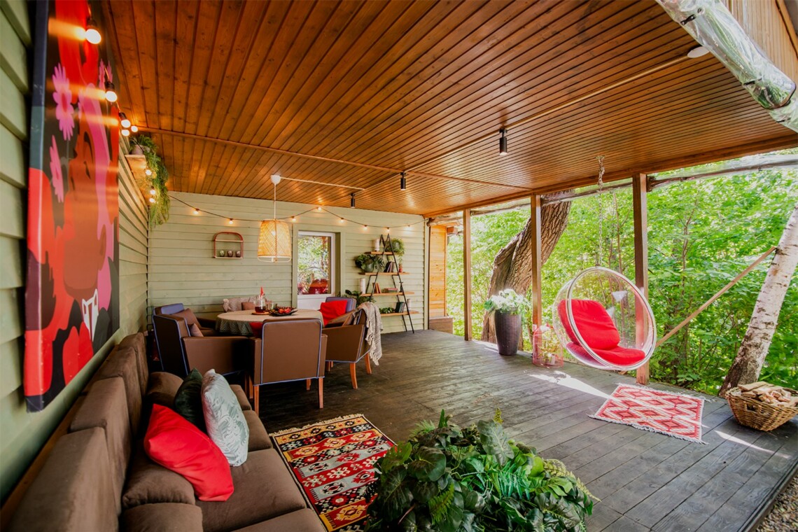 Гостевой дом Шале Просторный двухэтажный дом – хороший вариант для комфортного отдыха семьи или небольшой компании. Дом находится на берегу реки Волга. Комфортное размещение от 6 человек. Максимальное количество – 8 человек (6 основных и 2 дополнительных места). На первом этаже расположена гостиная с выходом в помещение Патио и террасы, одна спальня. На втором этаже 2 спальни и зона отдыха с панорамными окнами с видом на территорию отеля. Одним из достоинств этого дома является кострище с видом на реку. Гостиная оснащена кухонной плитой, решеткой для гриля и чайной станцией. Спальни оборудованы двуспальной кроватью, шкафом, комодом, прикроватной тумбочкой, журнальным столиком, вешалками, настольной лампой, питьевой водой. Два санузла в одном из которых находится душевая кабина. Халаты, тапочки, косметические средства, белье и всё необходимое в доме есть.