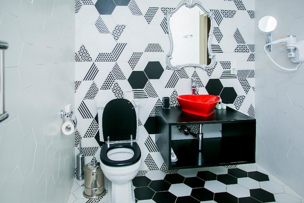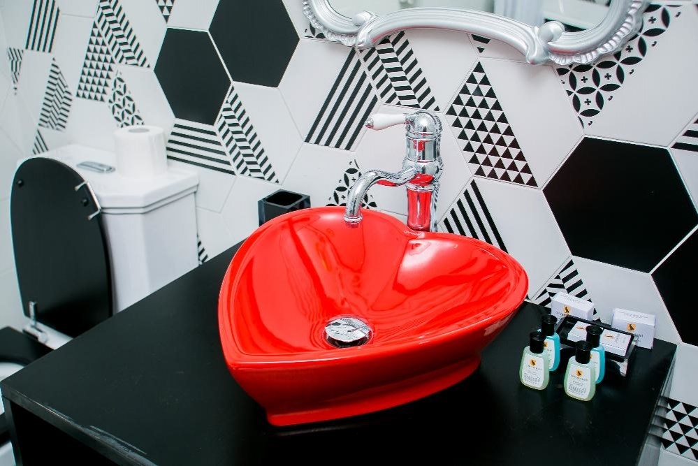Изюминкой номера являются: люстра из мха с бабочками, полки из карт и многое другое, интересные элементы декора. Весь номер выполнен в белом цвете черного цвета, с яркими акцентами на мебели и текстиле.