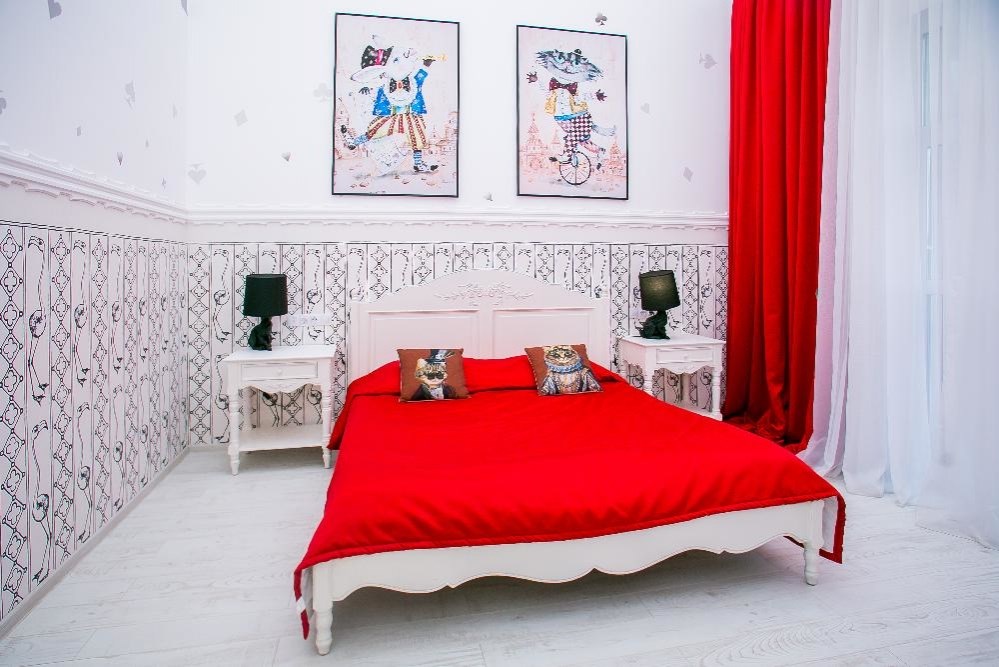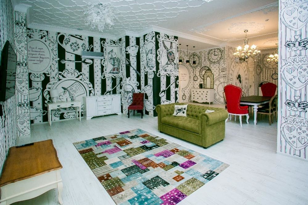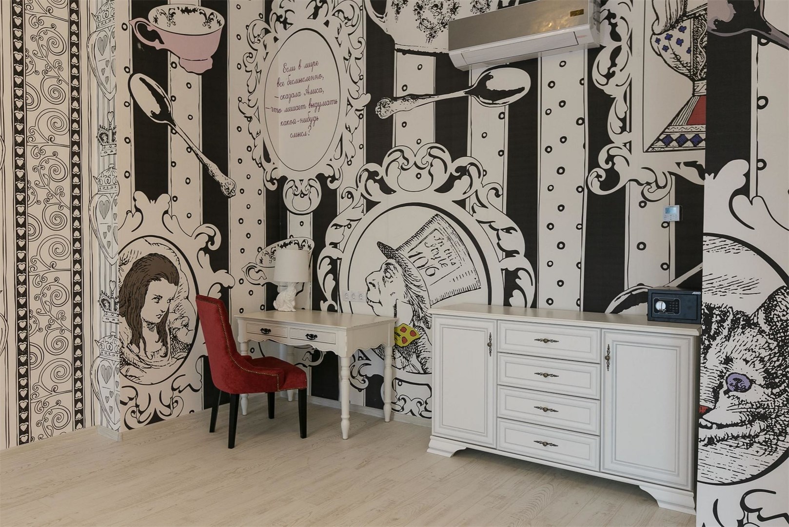 Тематический номер “Алиса в стране чудес”, в котором вы становитесь главным героем самой настоящей сказки, где совершенно непонятно, что правда, а что иллюзия. Тут можно зайти в номер и не найти дверь обратно, дизайн стен и мебели сделать интерьер ни на что не похожим.