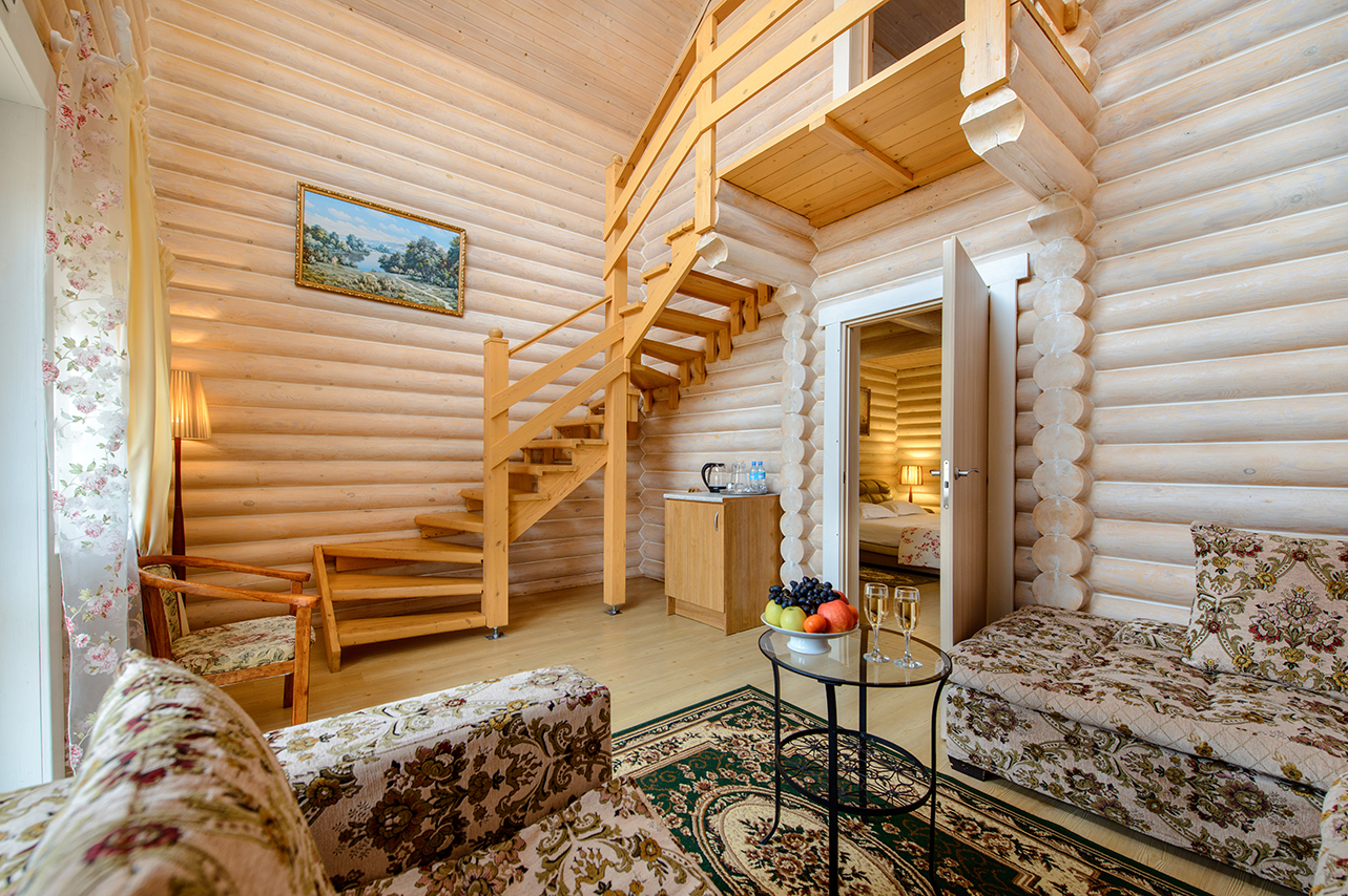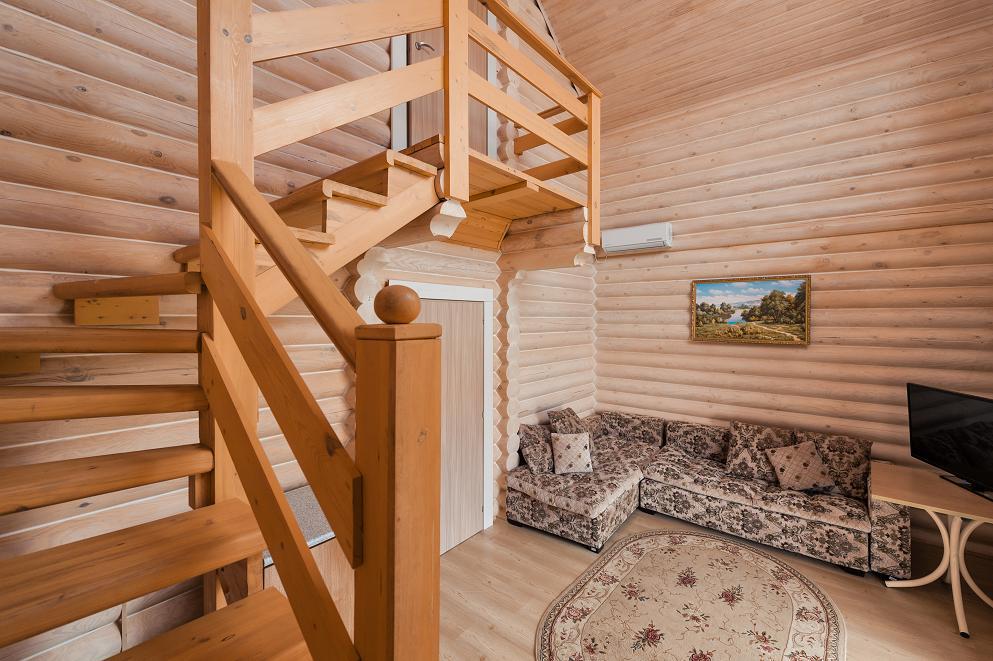 Удобства: кондиционер, холодильник, телевизор, фен, сейф, душ (на первом этаже), ванная комната (на втором этаже), утюг, гладильная доска , чайник, халат, тапочки
