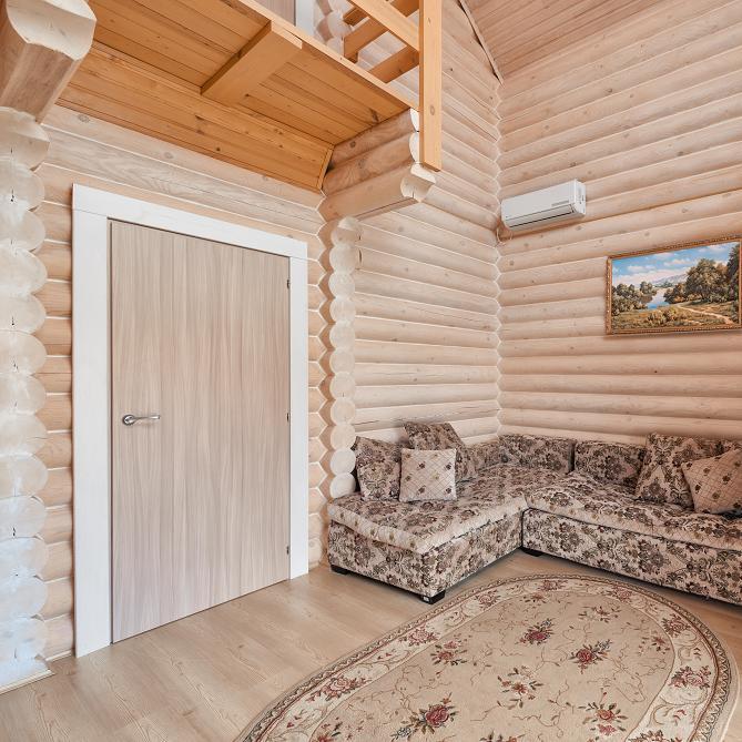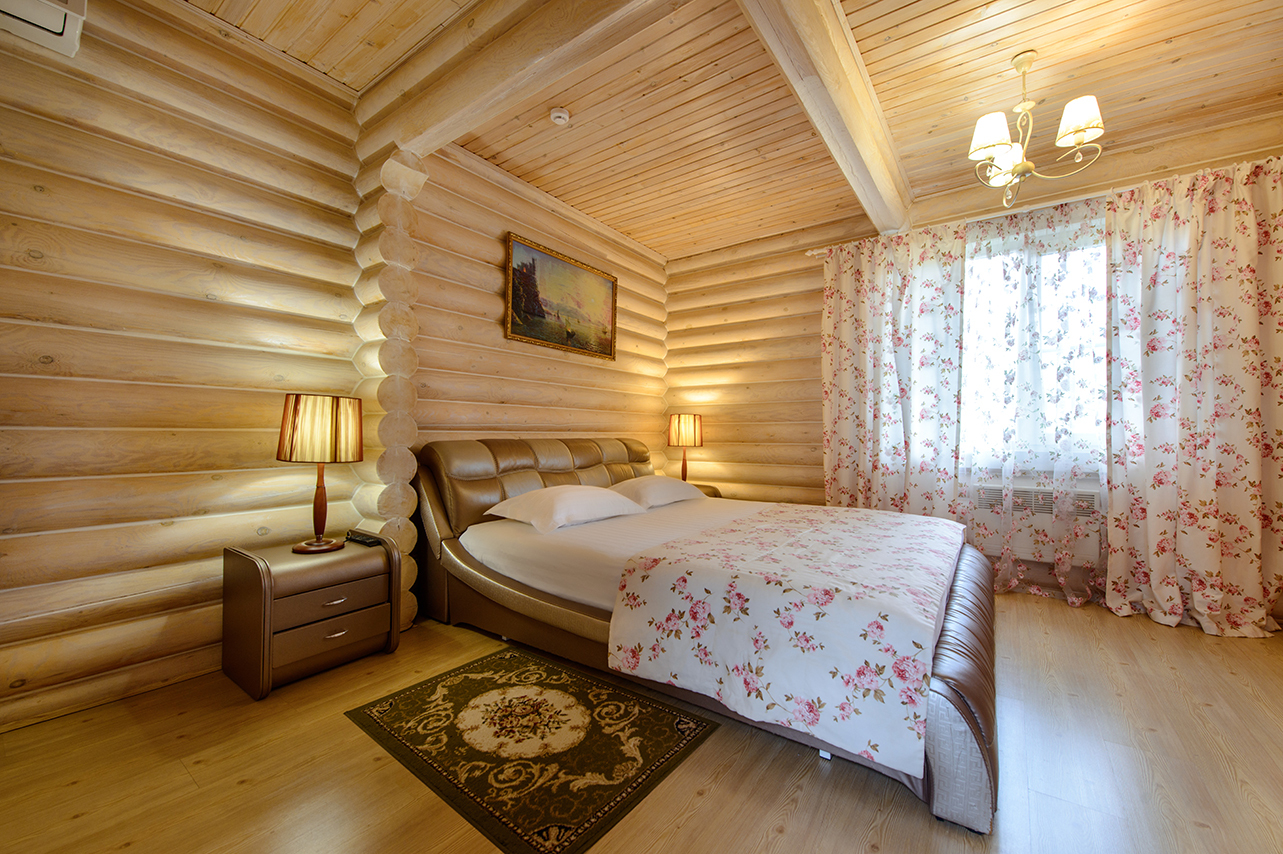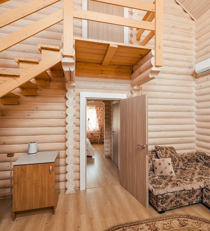 Двухэтажный, отдельно стоящий экокоттедж с балконом и отдельным входом, двумя спальнями и гостиной. Внутренний дизайн выполнен в стиле “Прованс”.