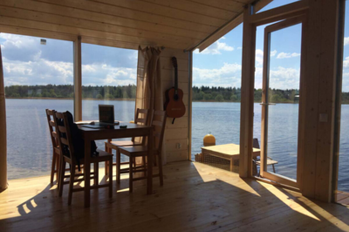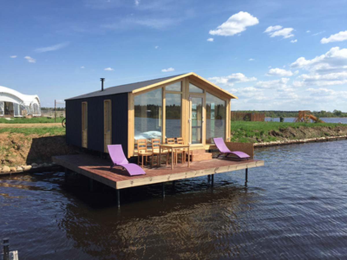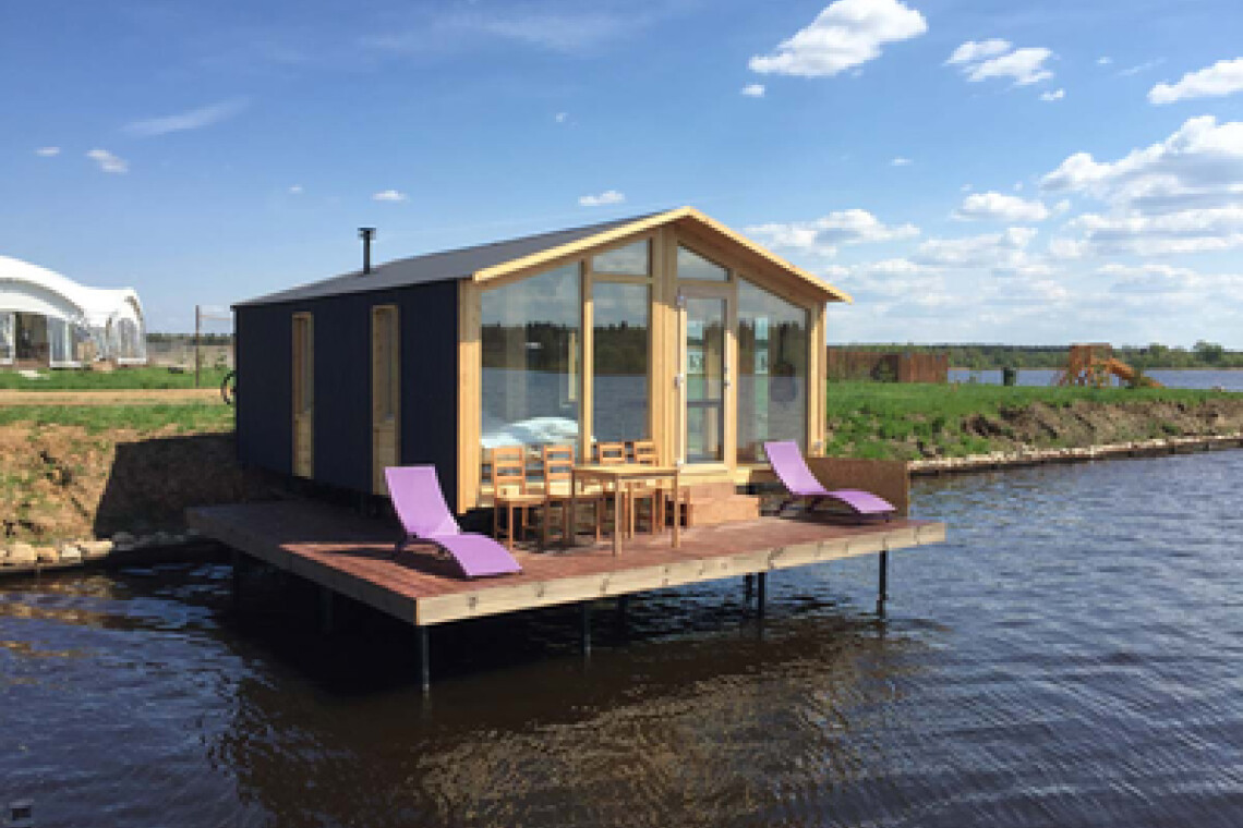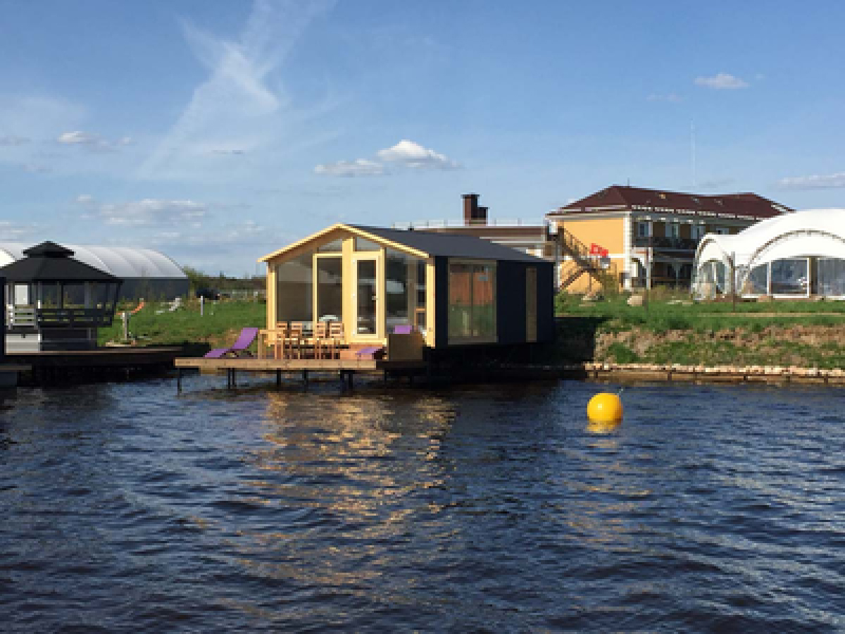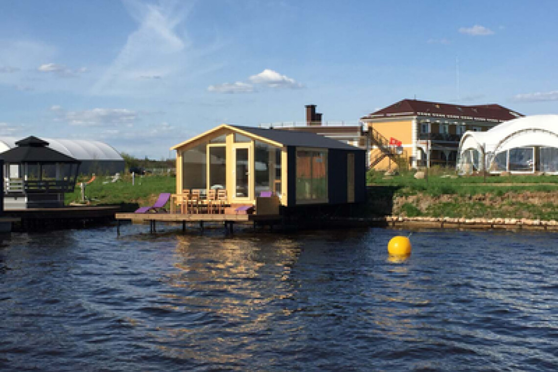 В отеле построено 2 дома: один пришвартован на краю причала в яхт-клубе «Палуба», а другой стоит на краю берега недалеко от причала.