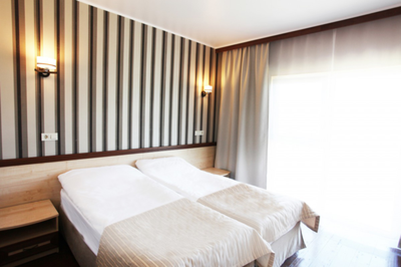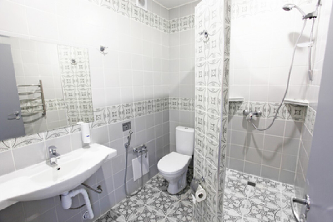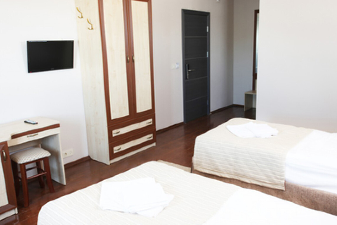 В номере имеются: кровати (совместные или раздельные), прикроватные тумбочки, гардероб, телевизор, стол, стул, холодильник, санузел с душевой кабиной, подогрев пола, фен, комплект полотенец, шампунь, гель.