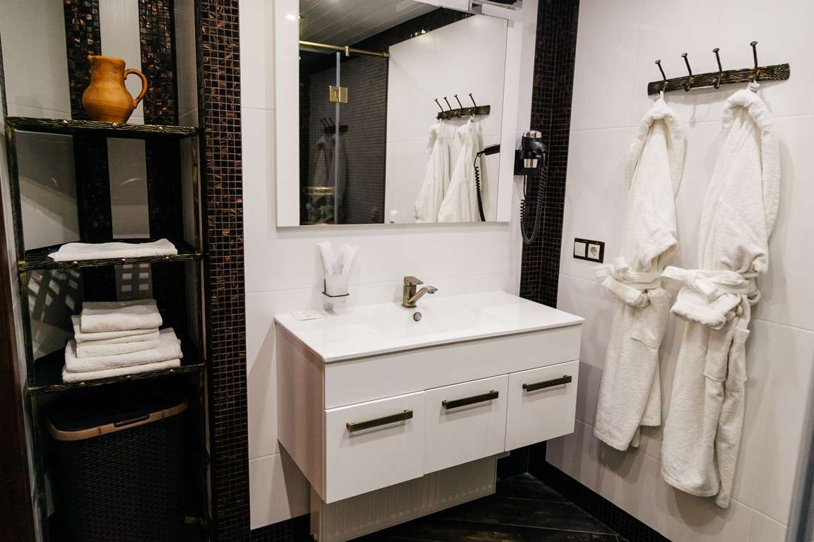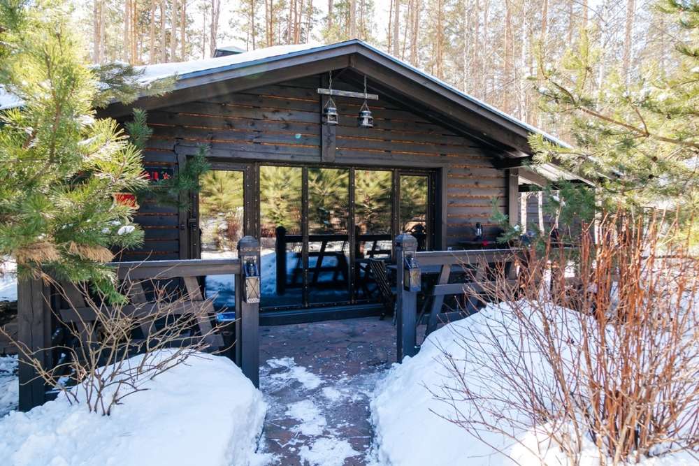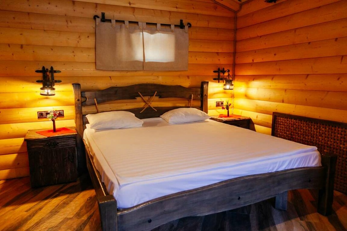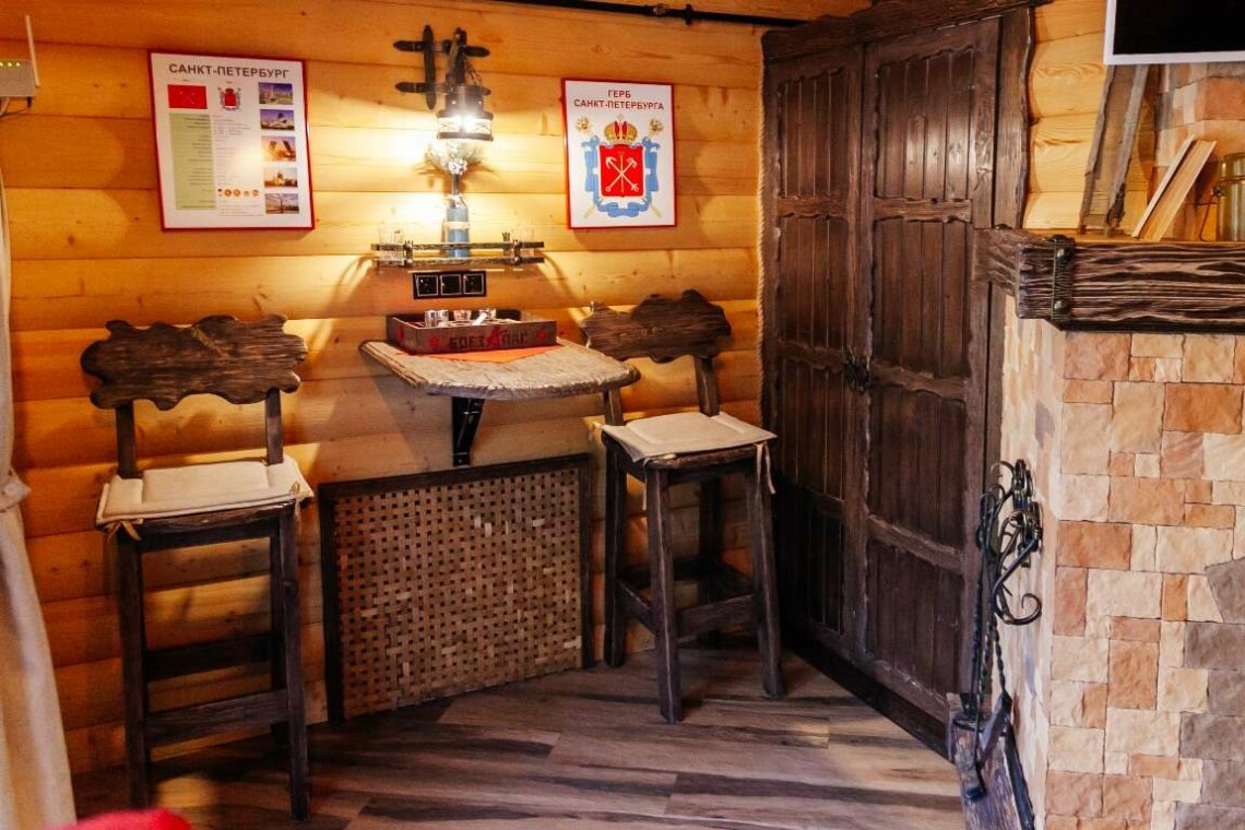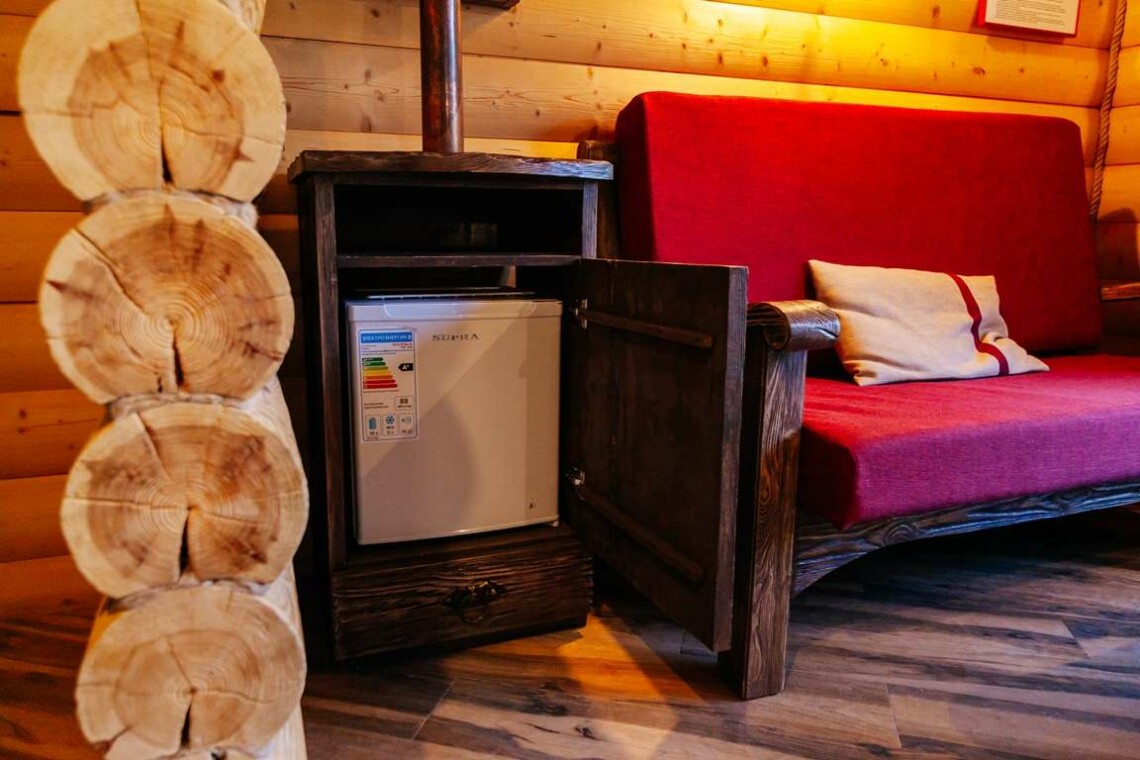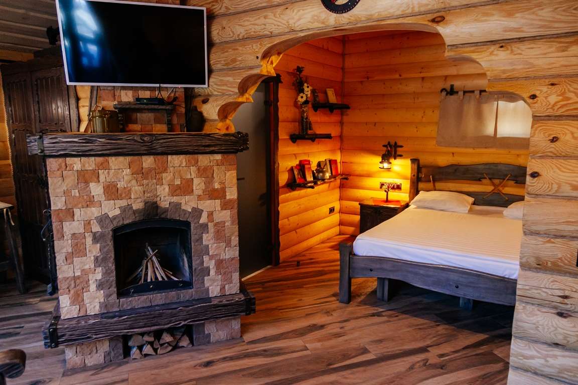 Особое место занимает дополнительное место отдыха с повышенным стульями ручной работы и откидным столиком. Беседа в уединении друг против друга создаст уютную атмосферу, а WI-FI поможет вам всегда быть на связи. Летом от жары вас спасет кондиционер, а зимой от холода – настоящий камин. Домик можно снять посуточно на двоих или на семью до трех человек. Еду можно заказать из нашего ресторана или привезти с собой, имущество принадлежит прежней! Для хранения продуктов в домиках имеется холодильник.